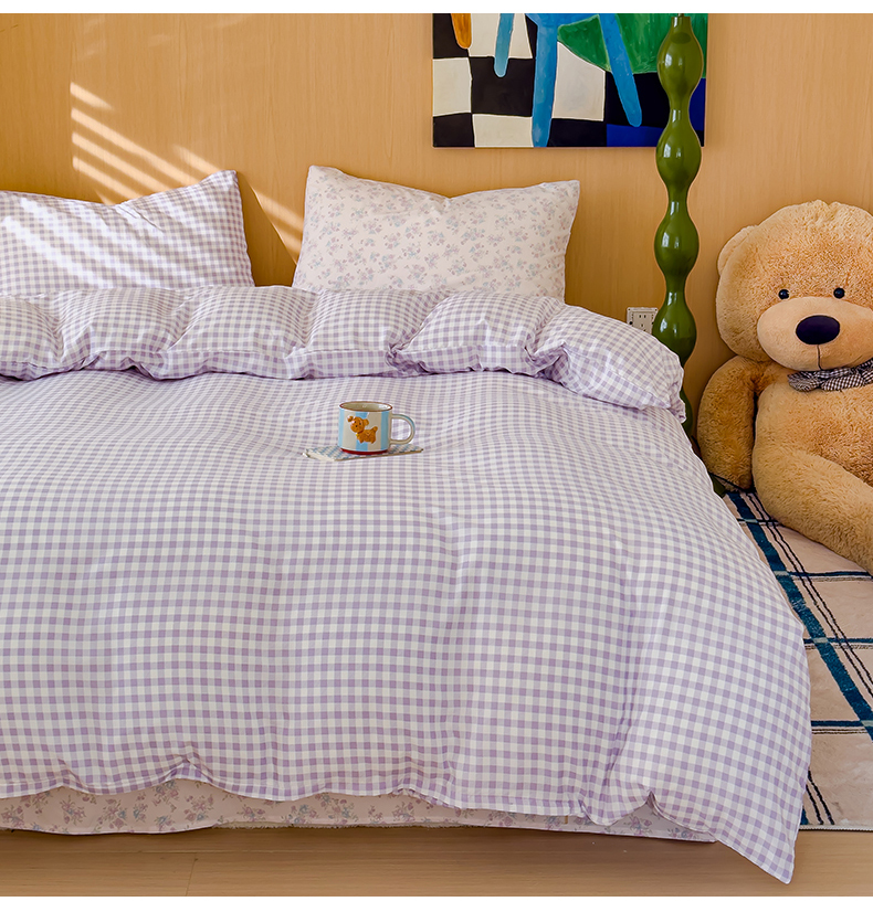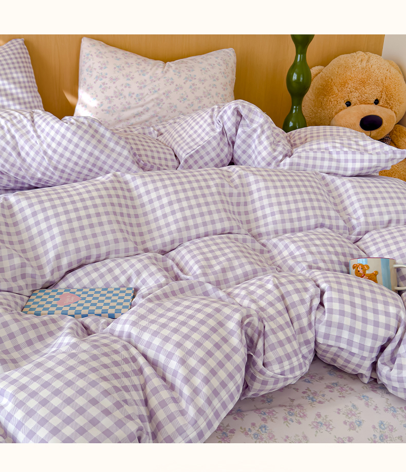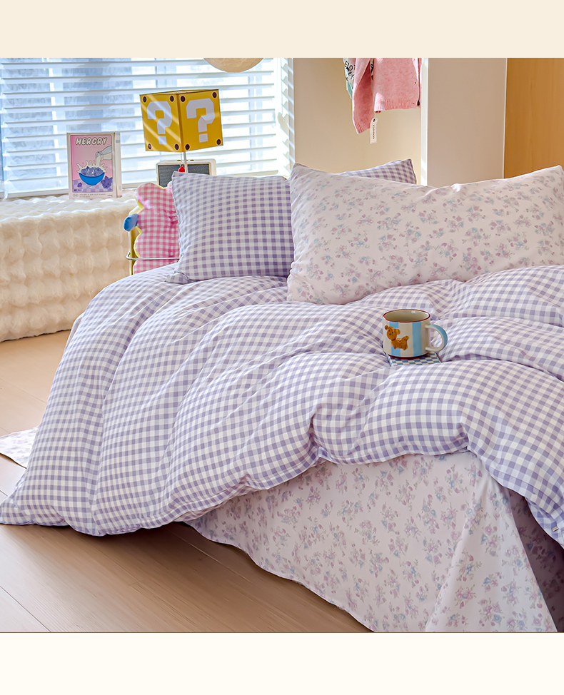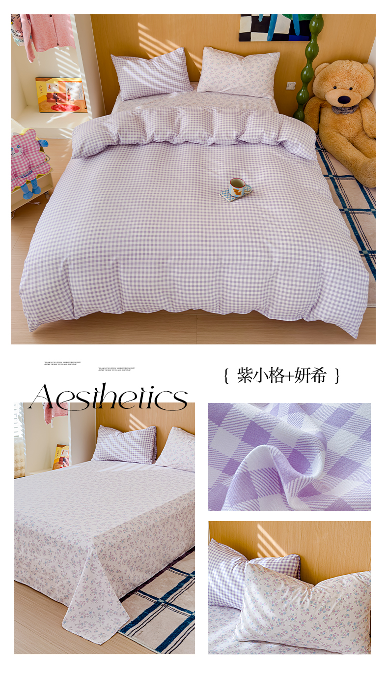 当前位置: 91家纺网 > 商品网购 > 床品套件 > 四件套 > 针织棉四件套 > 妖妖家纺 2025新款云感针织棉混搭四件套 紫小格+妍希