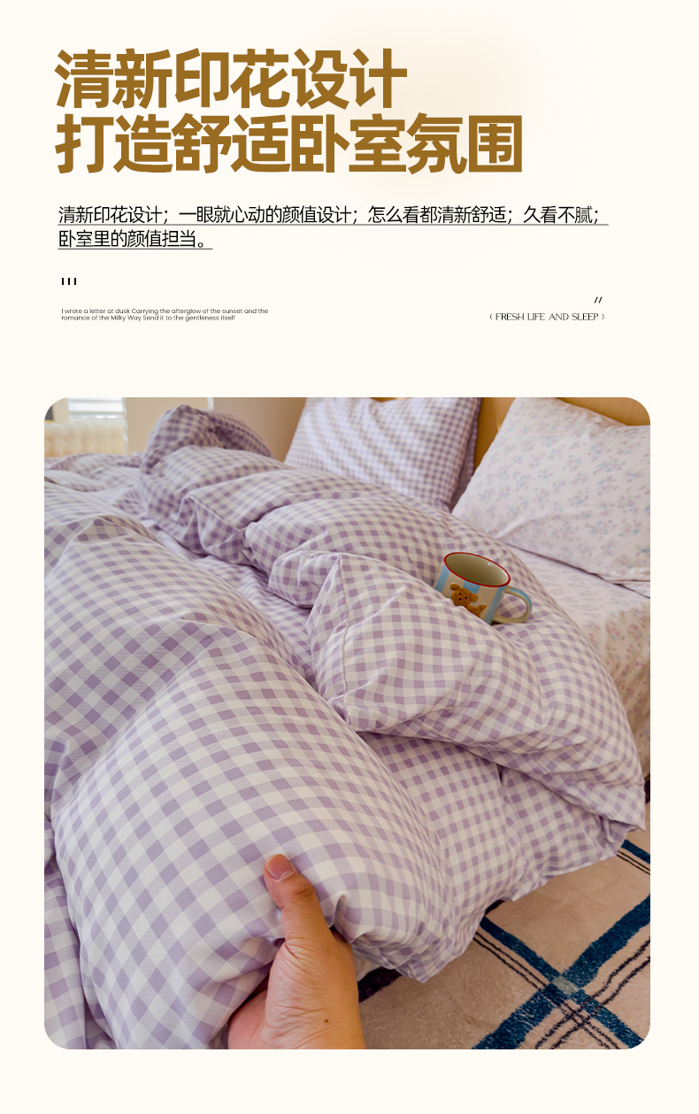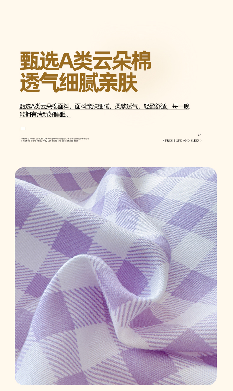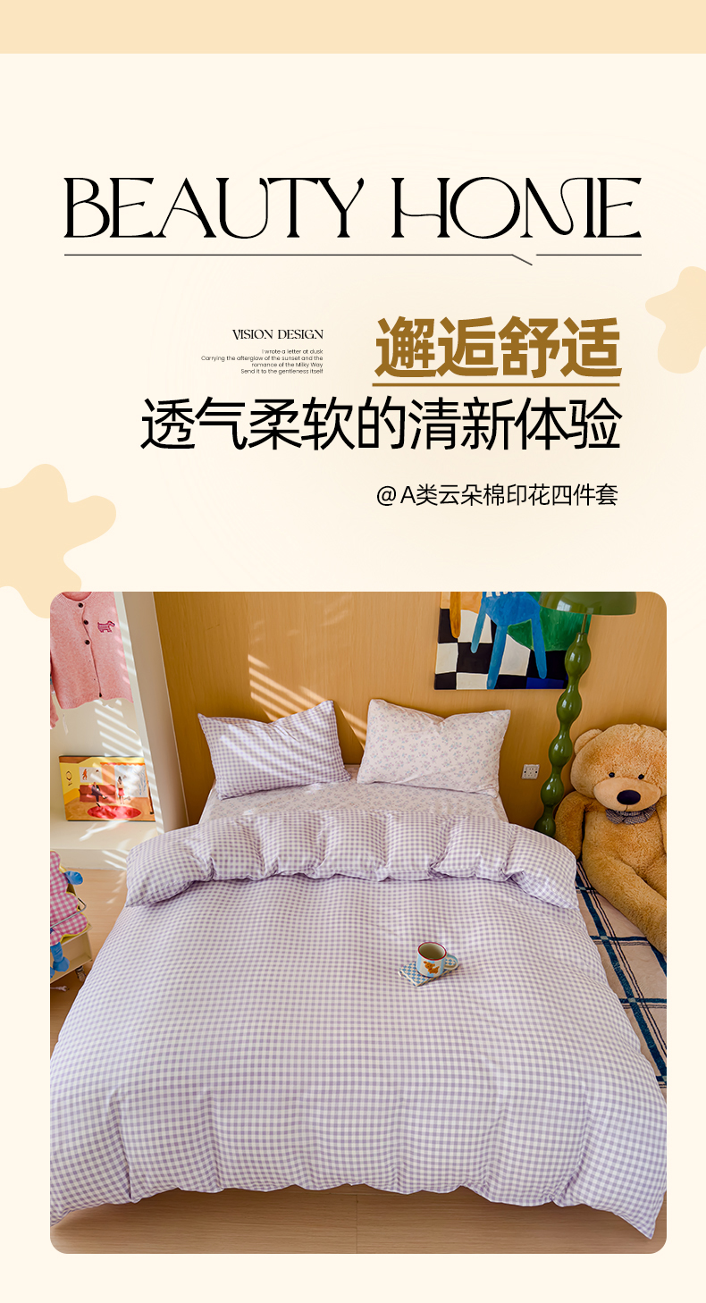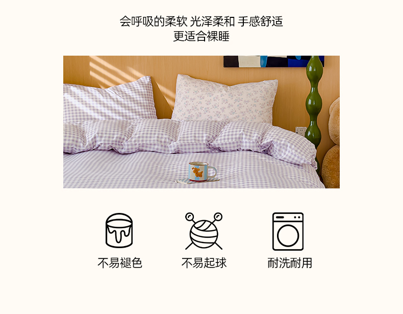 当前位置: 91家纺网 > 商品网购 > 床品套件 > 四件套 > 针织棉四件套 > 妖妖家纺 2025新款云感针织棉混搭四件套 紫小格+妍希