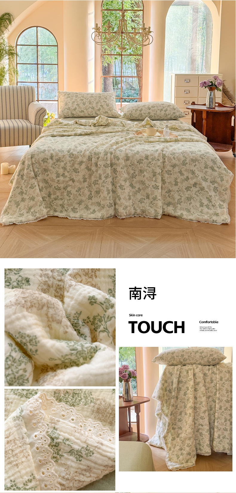 木楌 2025新款全棉A类皱皱纱印花四件套 小南国,小南国