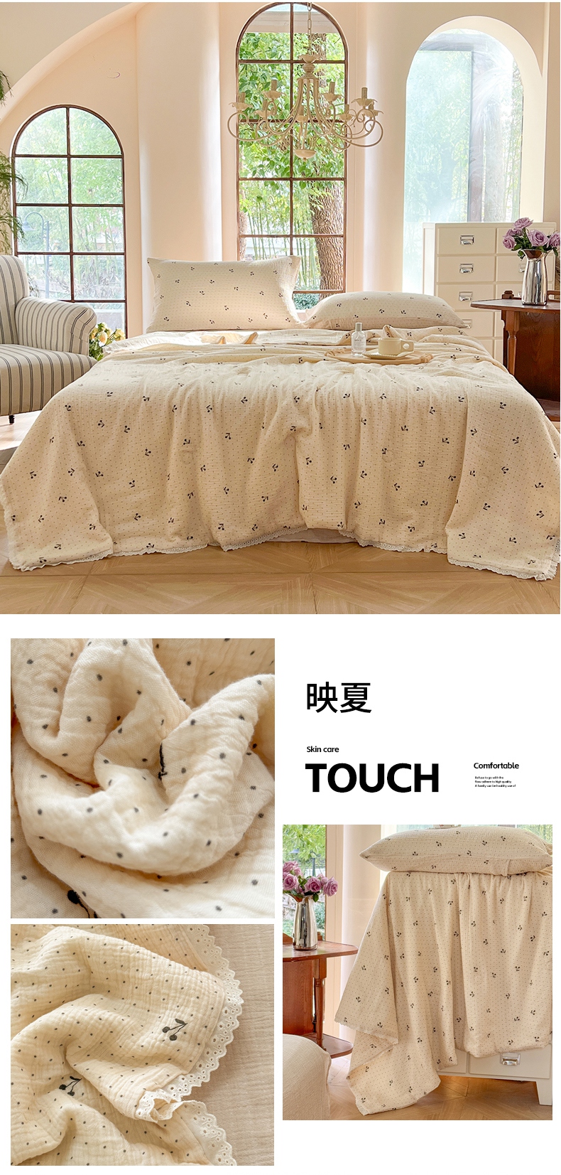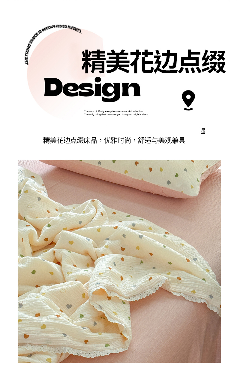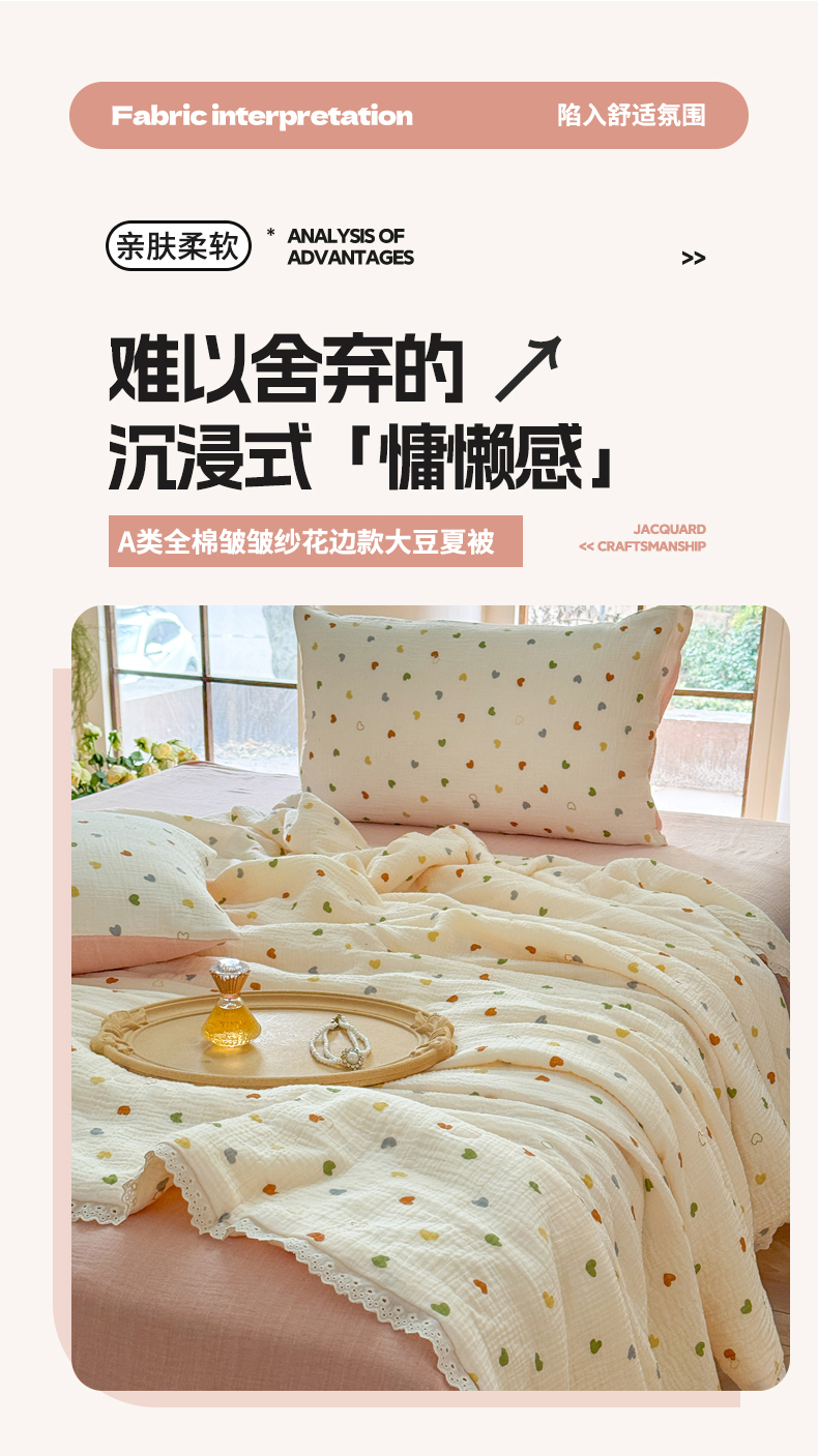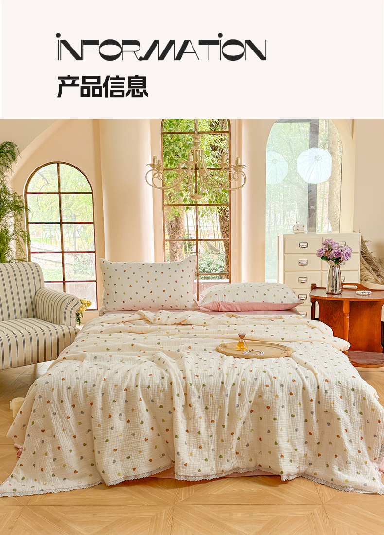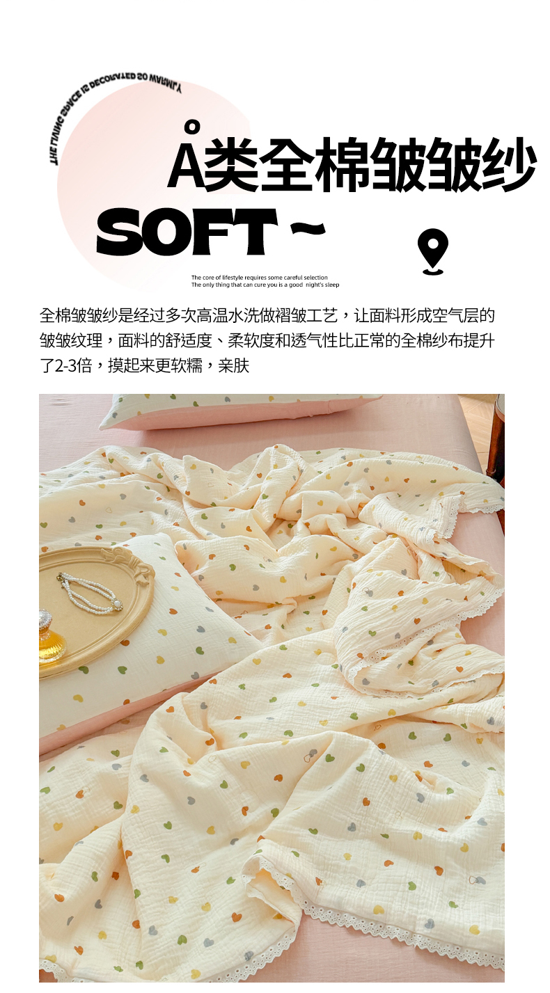 商品名称:木楌家居2025新款全棉皱皱纱花边款大豆夏被 宁雪