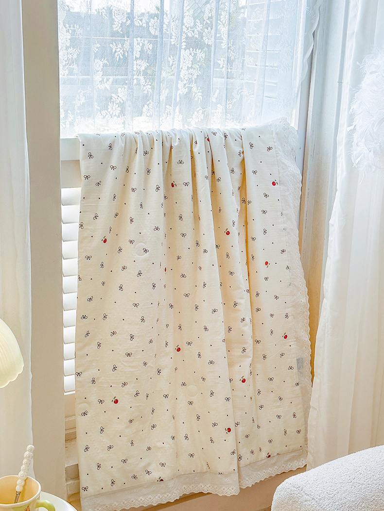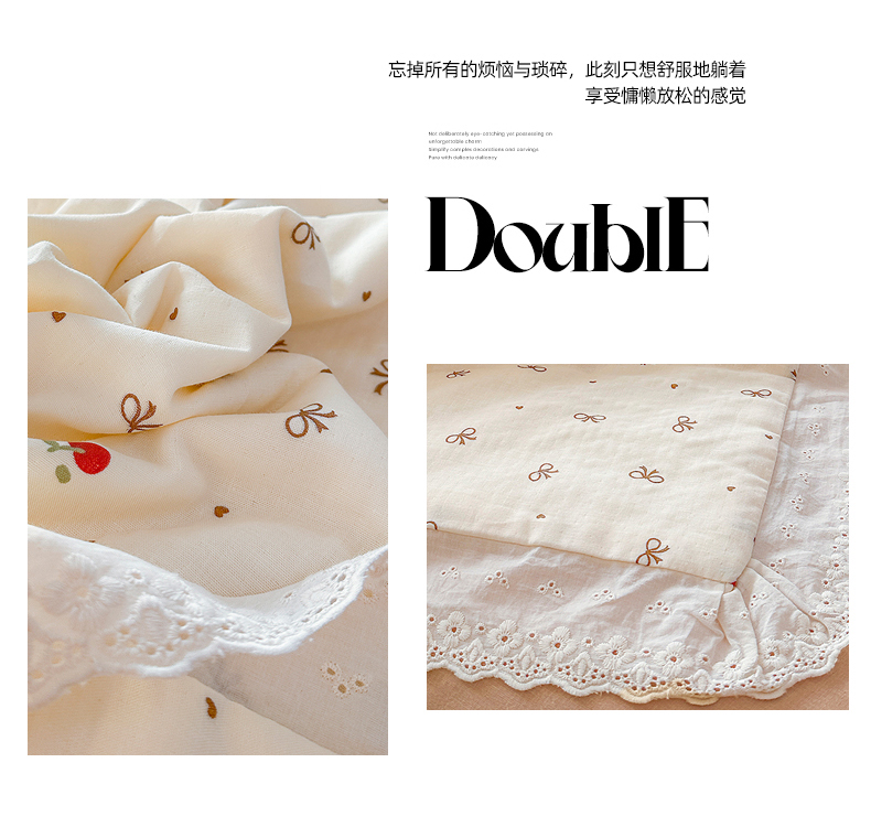 (总)木楌 2025年新款双层皱皱纱刺绣款夏被大豆被,蓓蕾,小飞象,蝴蝶结,领结兔,枇杷叶,三叶草,小樱桃,幸运熊