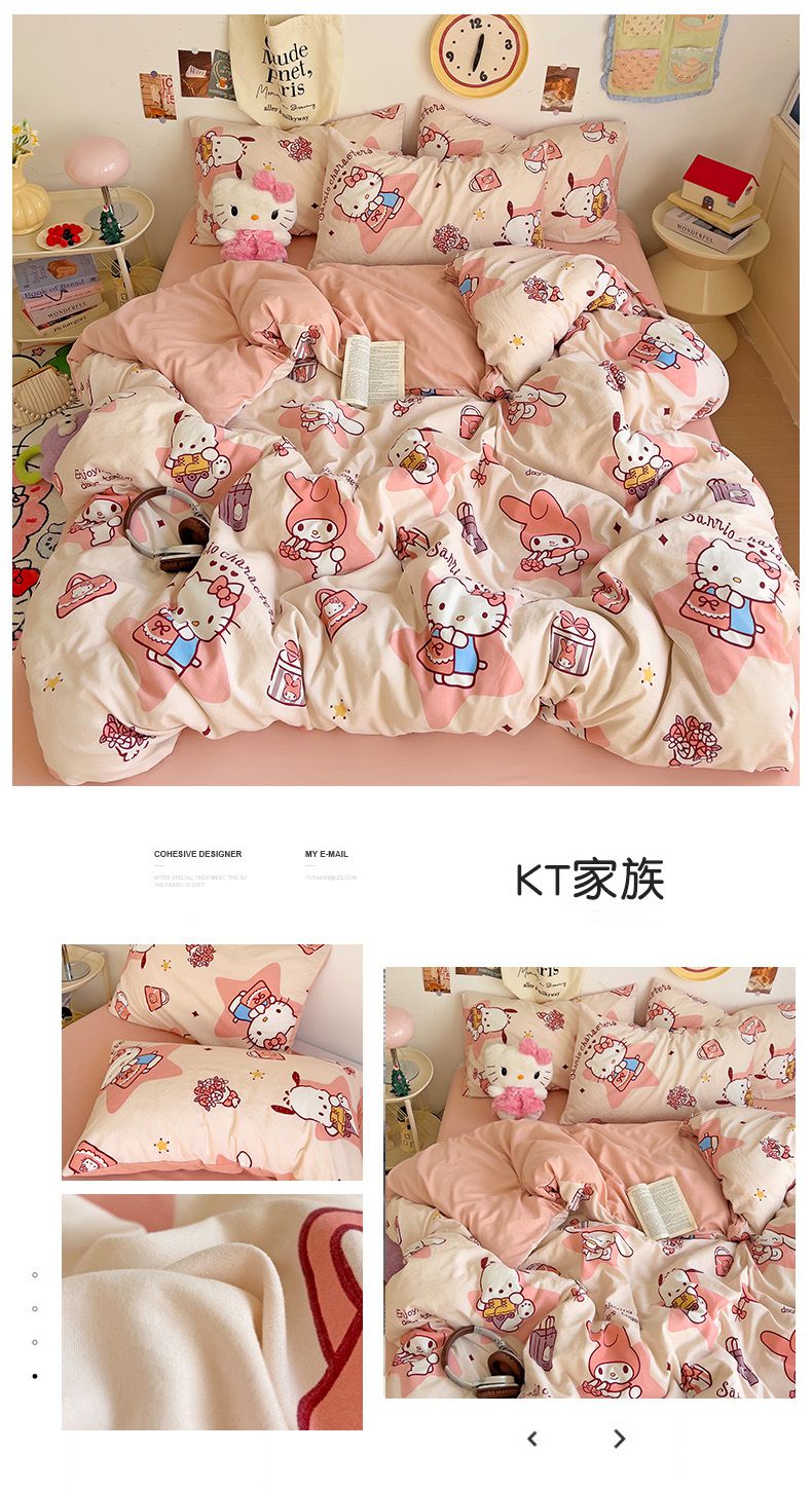当前位置: 91家纺网 > 商品网购 > 床品套件 > 四件套 > 水洗棉四件套 > 贝扬思家纺 2025新款水洗棉三丽鸥简约系列四件套-大床图 拼图kt