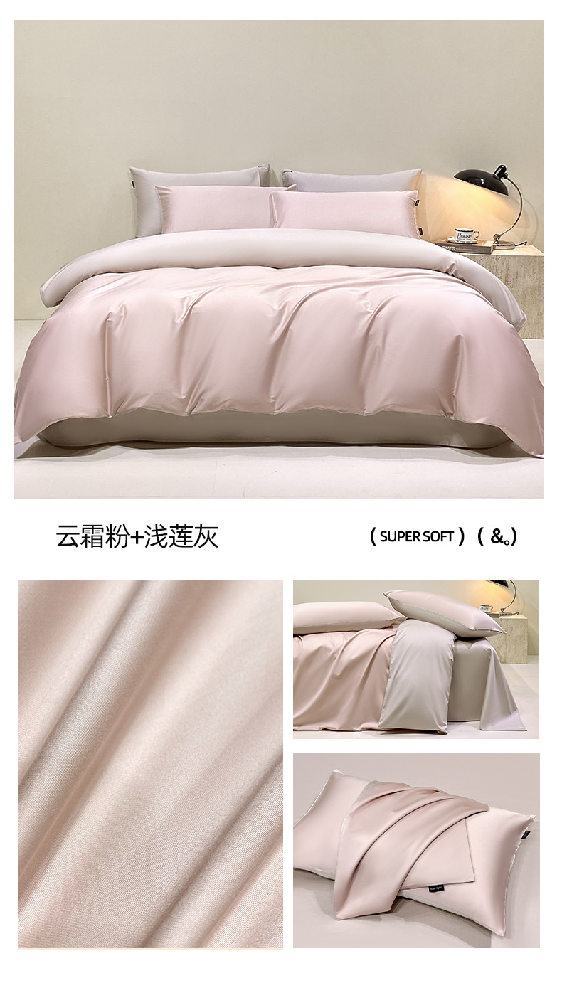 商品名称:拼社家纺 2025新款轻奢高支贡缎长绒棉四件套全棉四件套简约纯色纯棉床上用品(买家秀) 云霜粉+浅莲灰