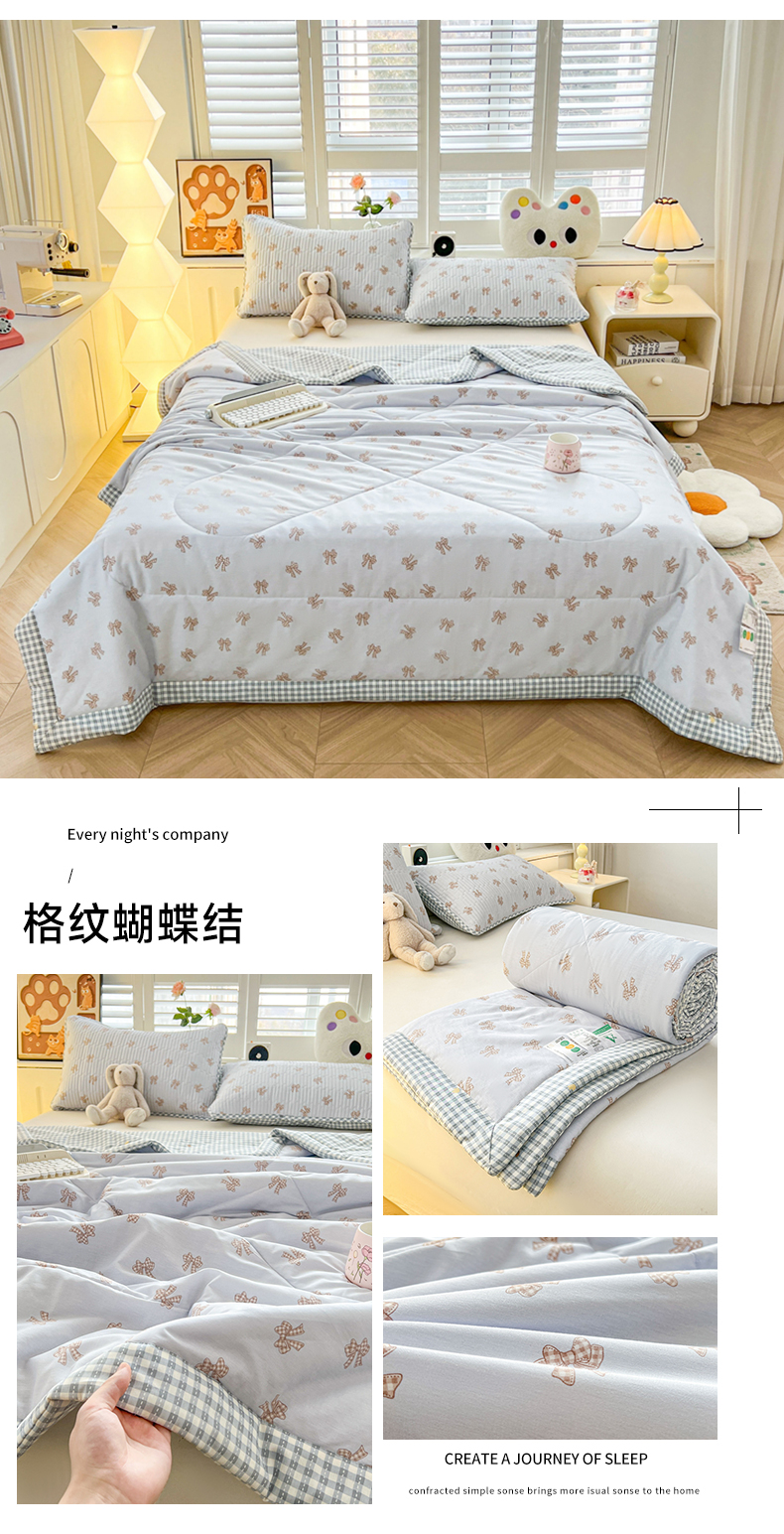雅萱家纺 2025新款全棉夏被套件 格纹蝴蝶结