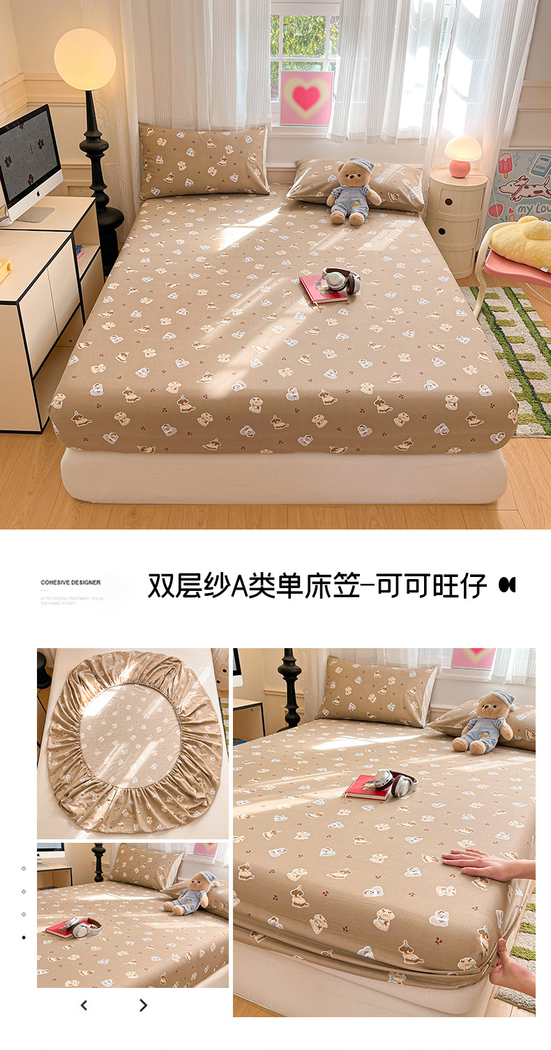 博雅 2025新款全棉A类双层纱床笠 可可旺仔