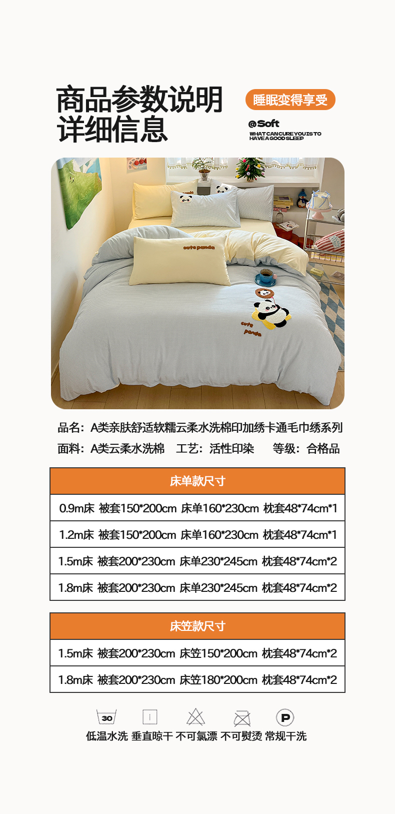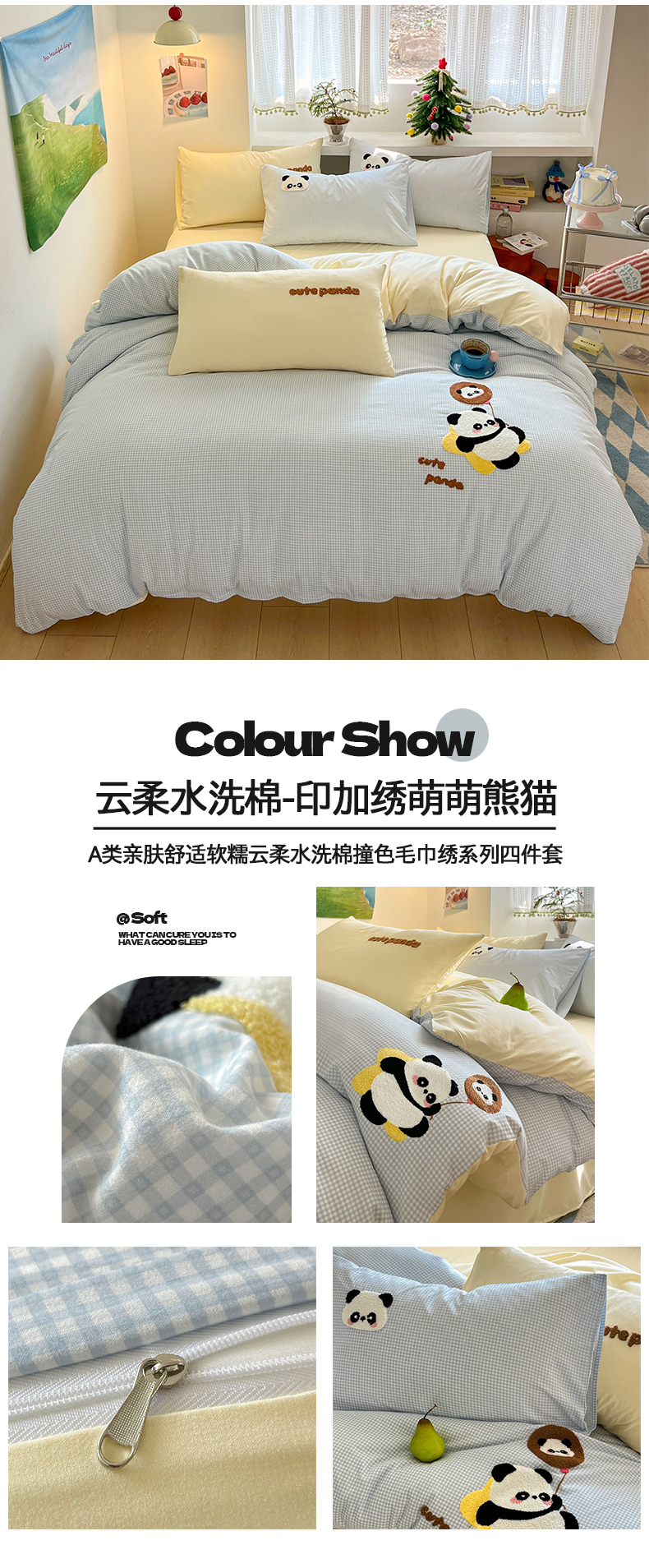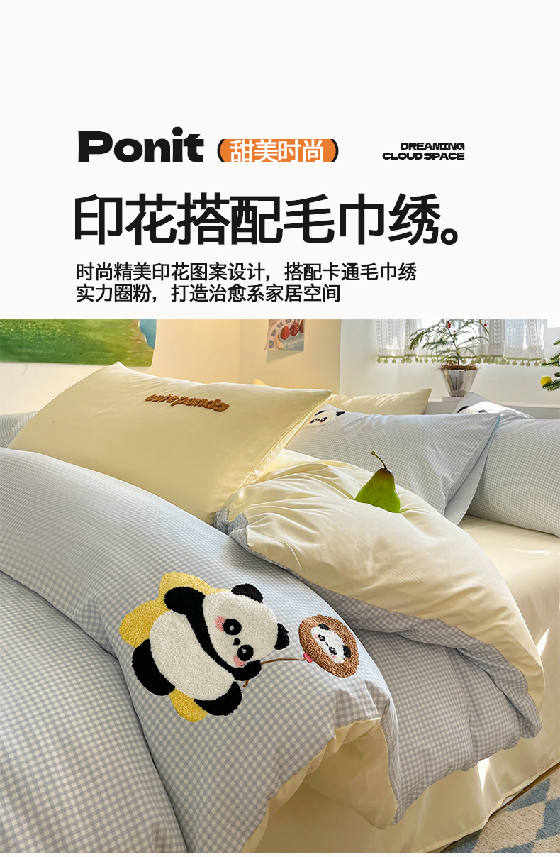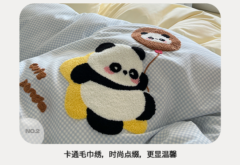当前位置: 91家纺网 > 商品网购 > 床品套件 > 四件套 > 水洗棉四件套 > 桃心家居 2025新款A类亲肤舒适软糯云柔水洗棉印加绣卡通毛巾绣水洗棉系列 云柔水洗棉-印加绣萌萌熊猫