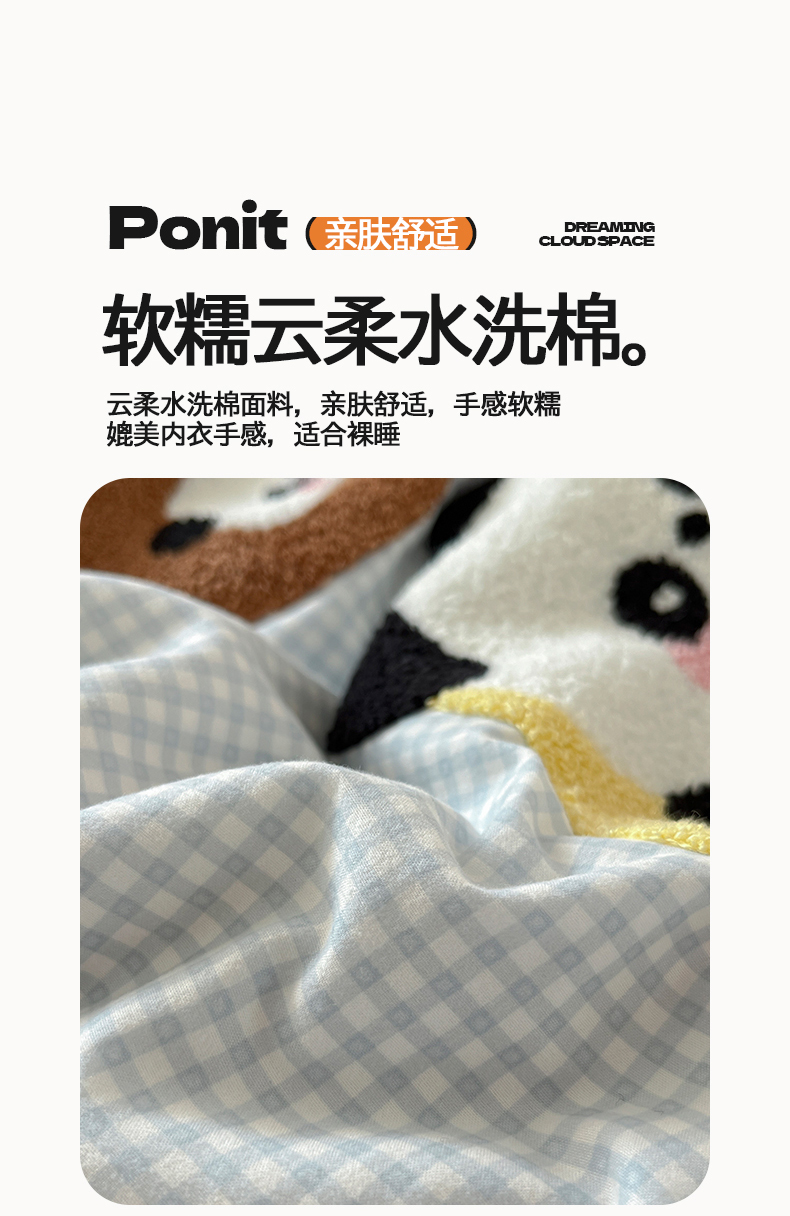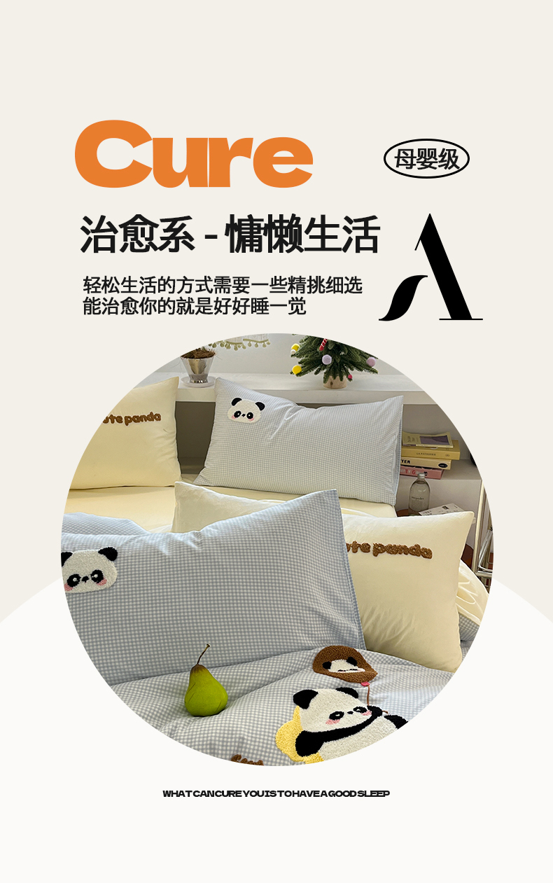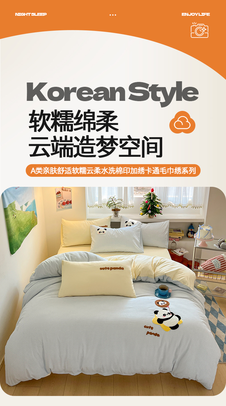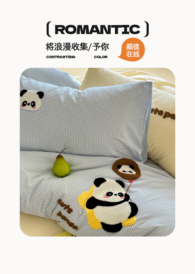 当前位置: 91家纺网 > 商品网购 > 床品套件 > 四件套 > 水洗棉四件套 > 桃心家居 2025新款A类亲肤舒适软糯云柔水洗棉印加绣卡通毛巾绣水洗棉系列 云柔水洗棉-印加绣萌萌熊猫