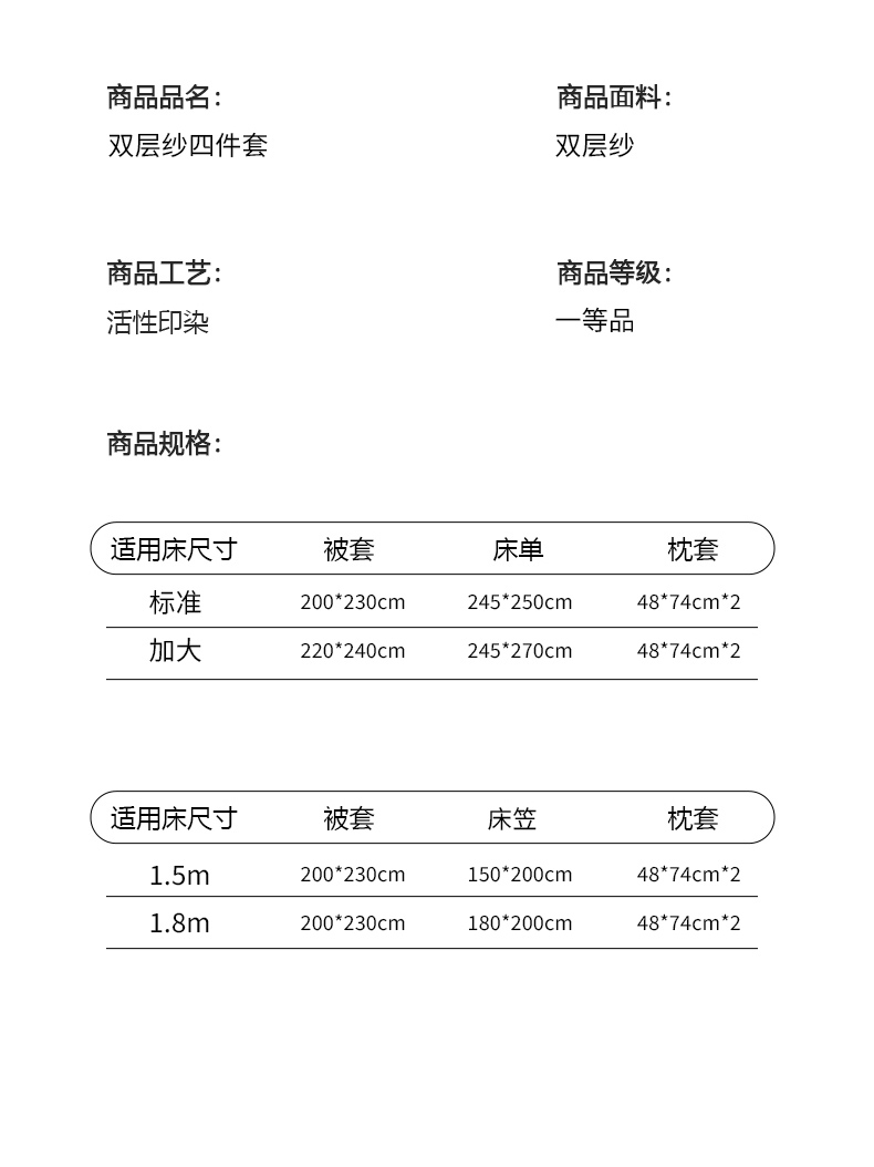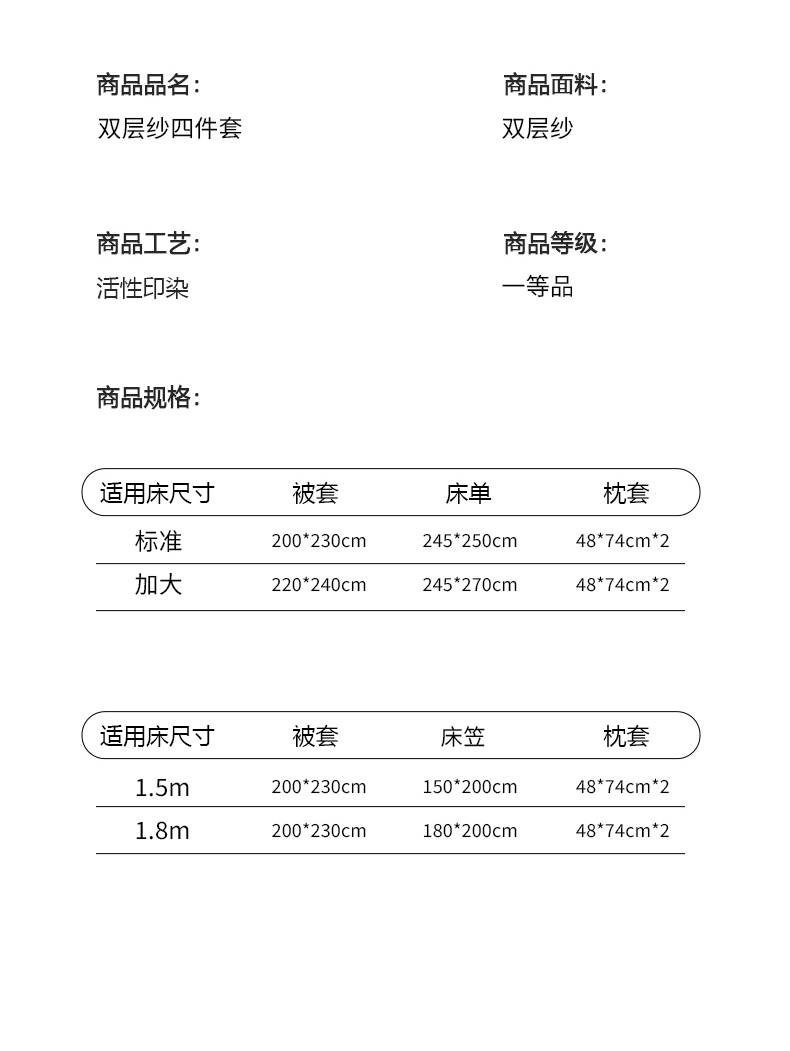 商品名称:(总)可思家纺2025新款可思-韩版双层纱四件套