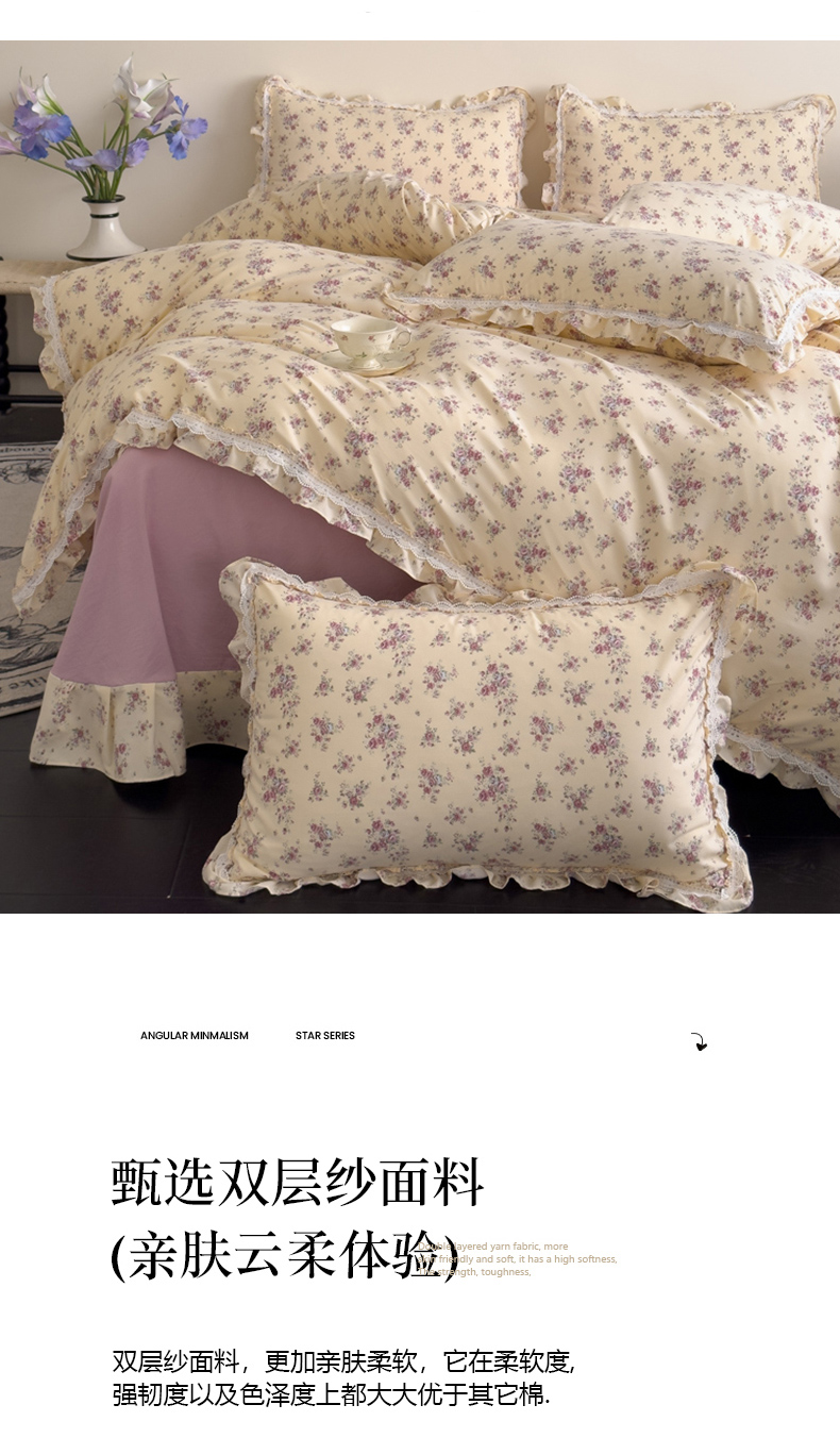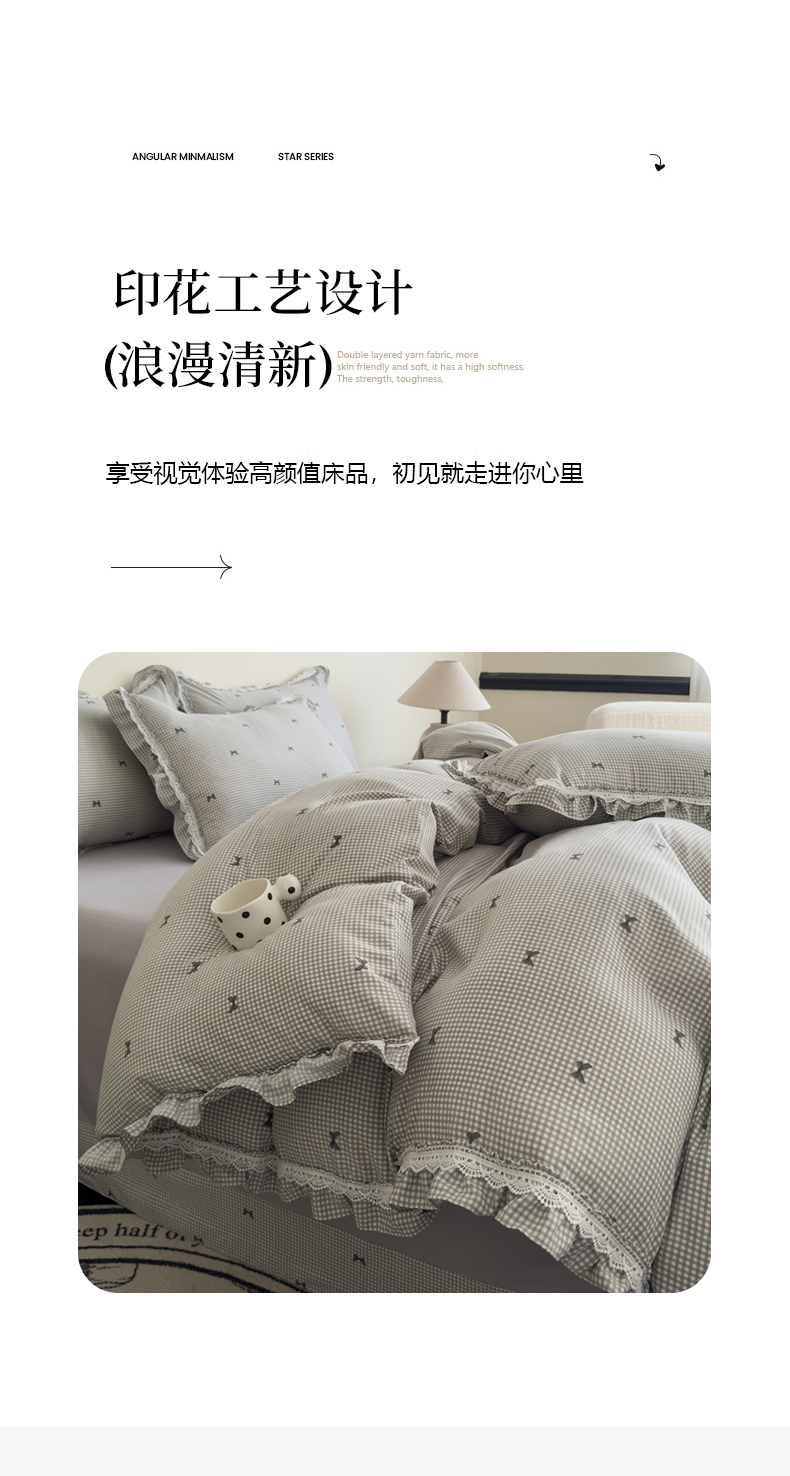 (总)可思家纺 2024新款韩版花边木棉皱皱纱四件套系列,安娜,蝶舞,芳华,粉佳人,格子控,赫本花园,花恋,花与兔,简爱,罗马假日,秘境,莫奈花园,秋实,桃夭,兔兔乐园,小玫瑰,小樱桃,学院派,雅梦,伊人,悠然,繁华,奶油少女,清欢,似锦,紫薰,紫郁