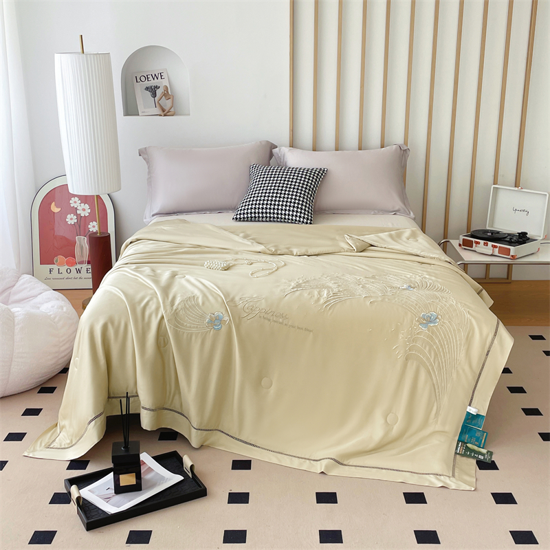 (总)优姿家纺 2025新款60S天丝绣花镂空夏被3,粉色,黄色,灰色,肉粉色,蓝色,浅绿色,黄色