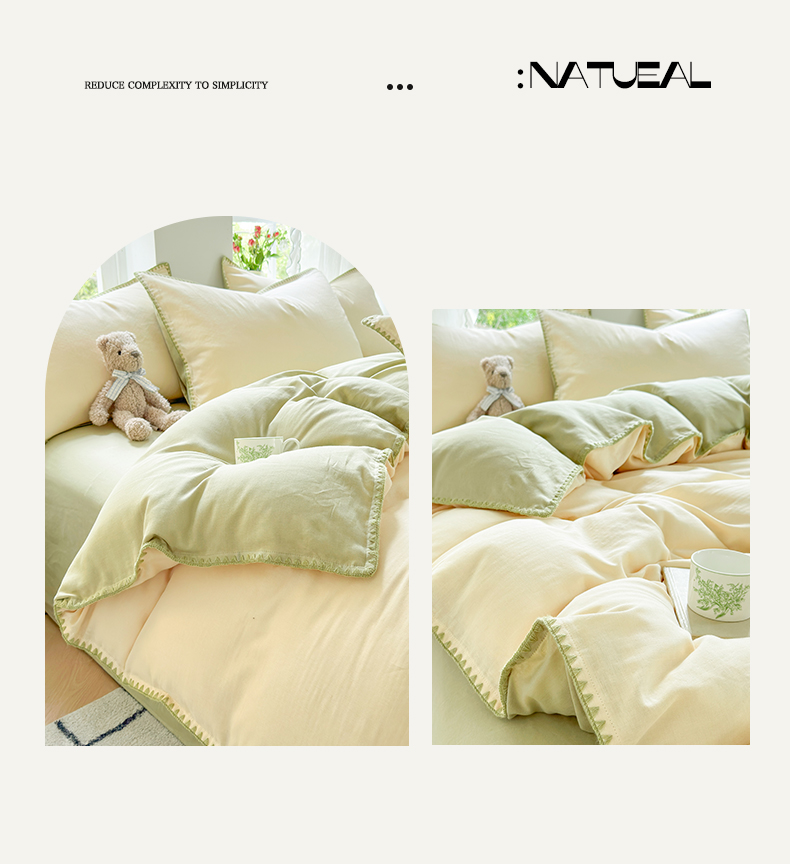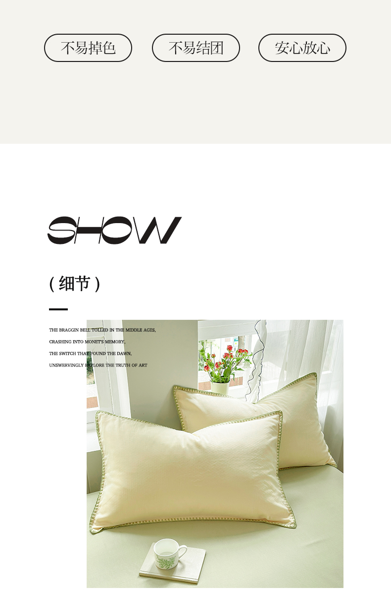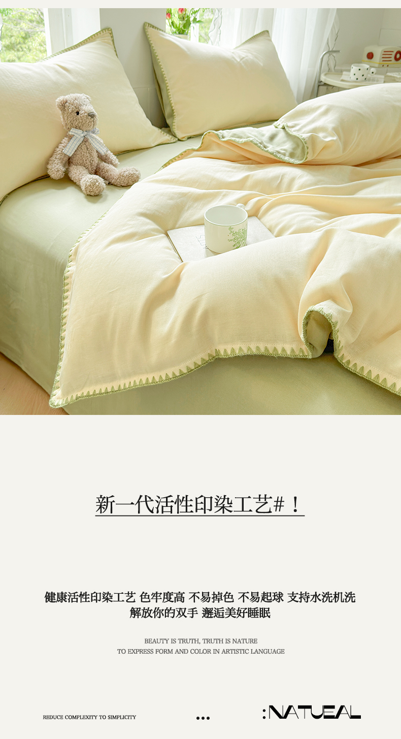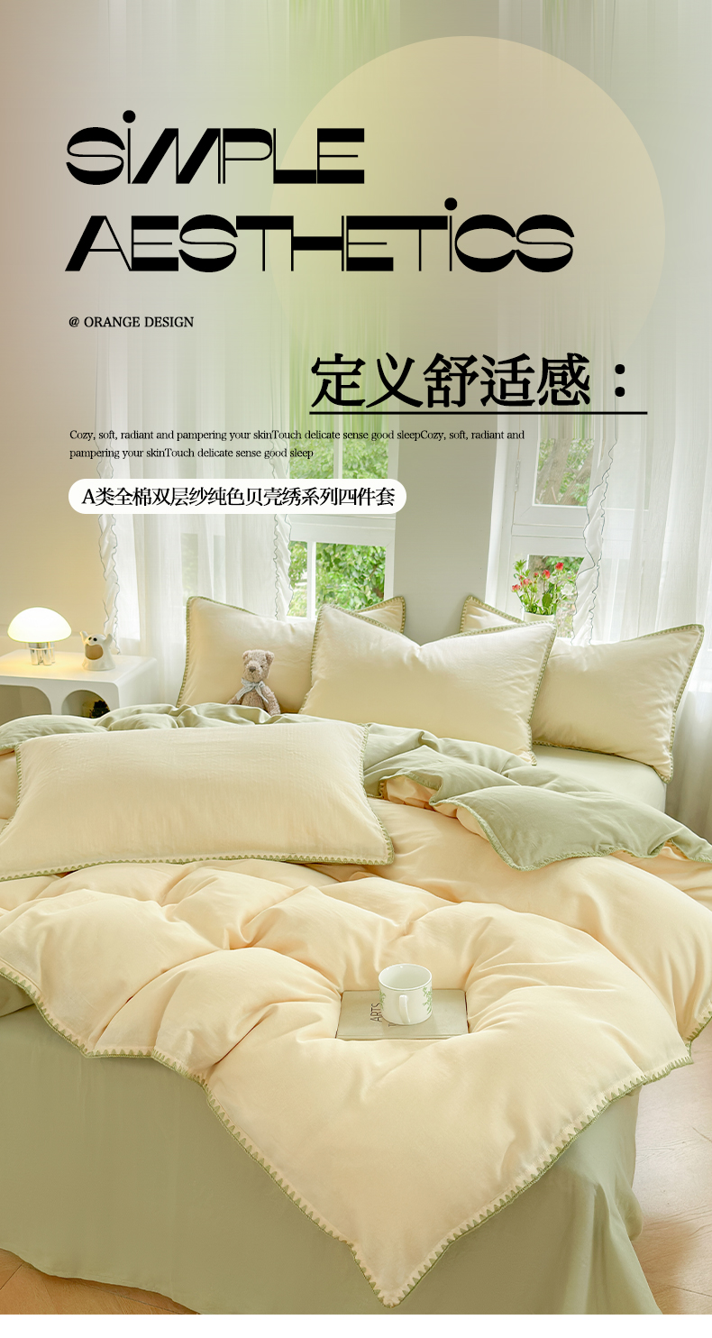 当前位置: 91家纺网 > 商品网购 > 床品套件 > 四件套 > 全棉普通四件套 > 莱登卡奴 2025新款A类全棉双层纱纯色贝壳绣系列四件套 双层纱奶白拼浅绿