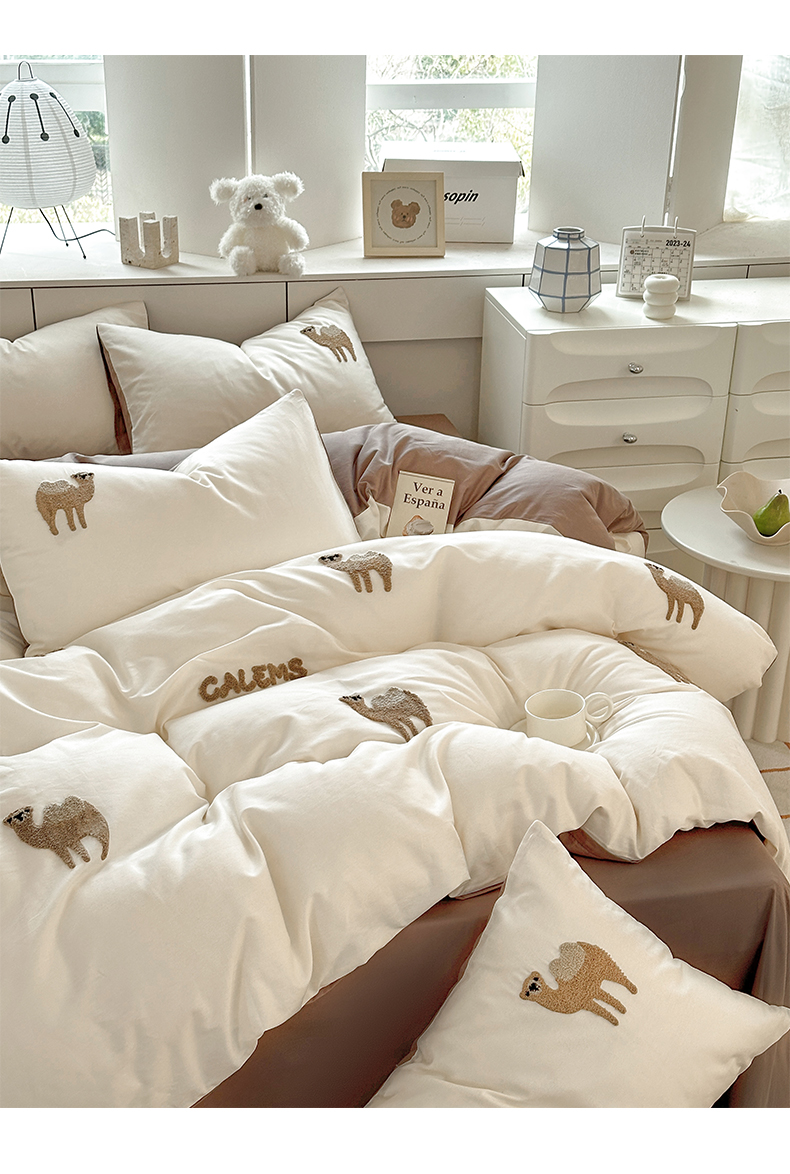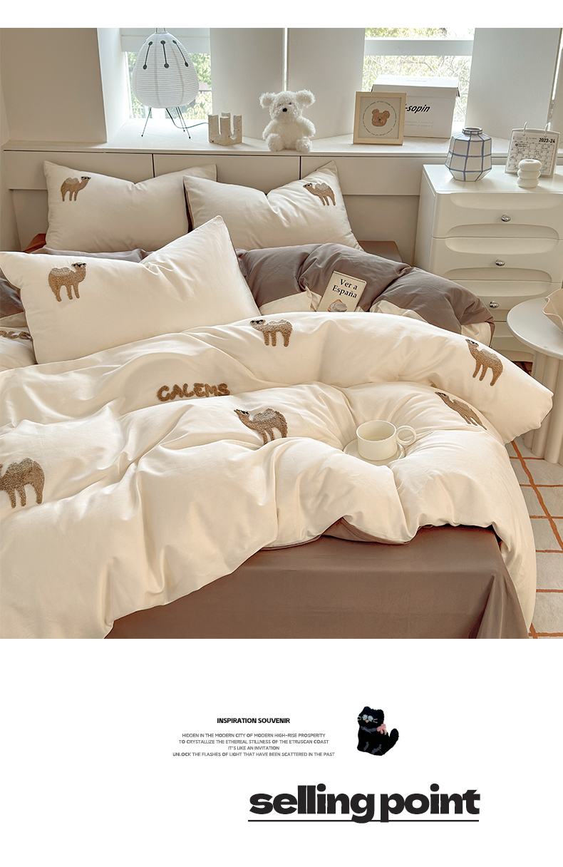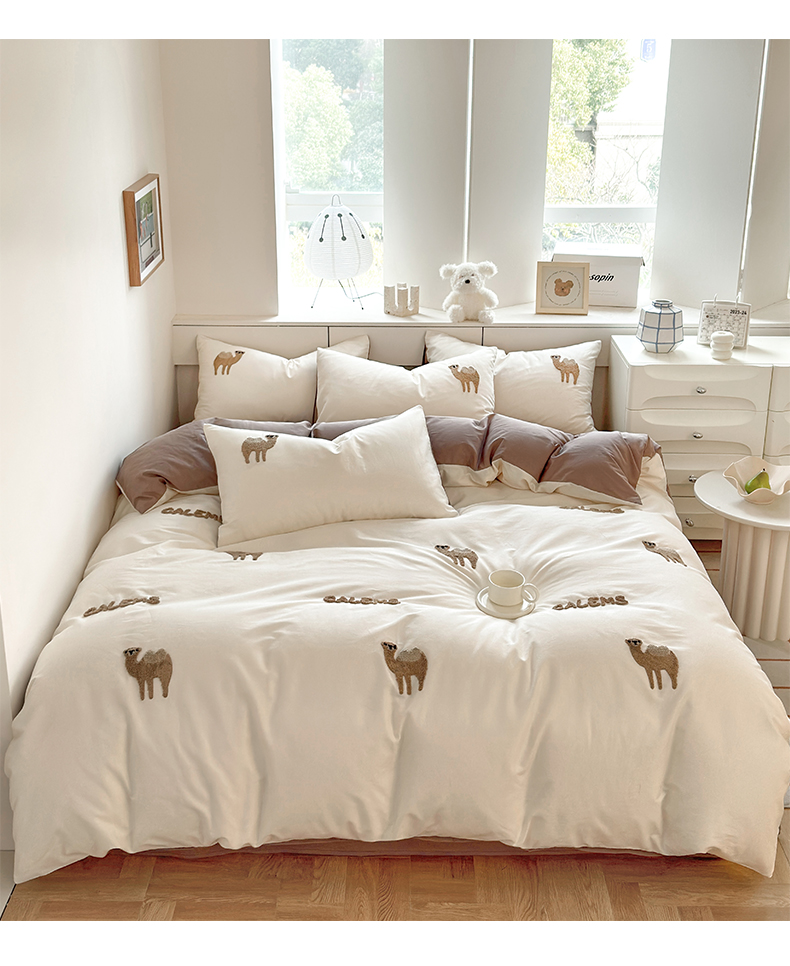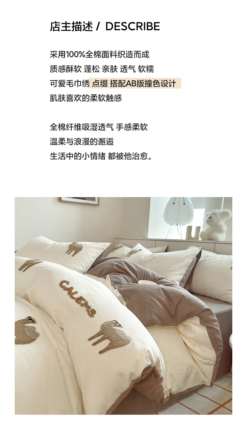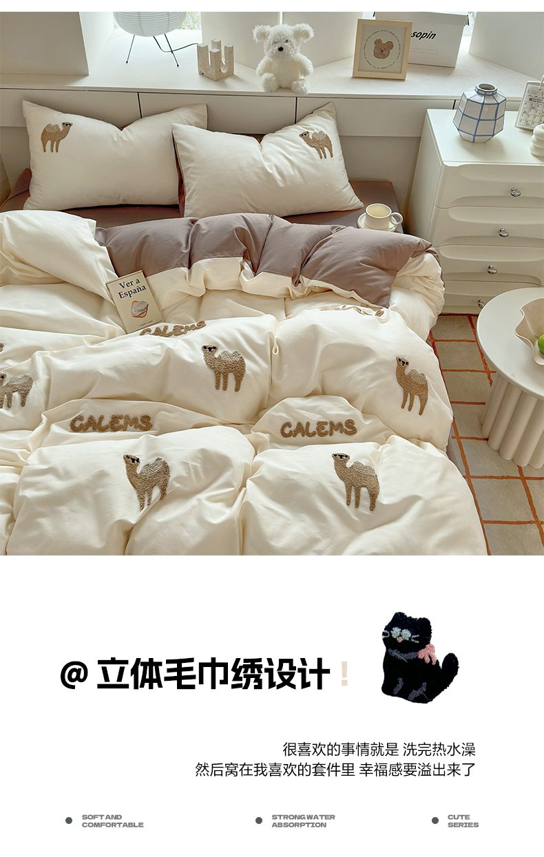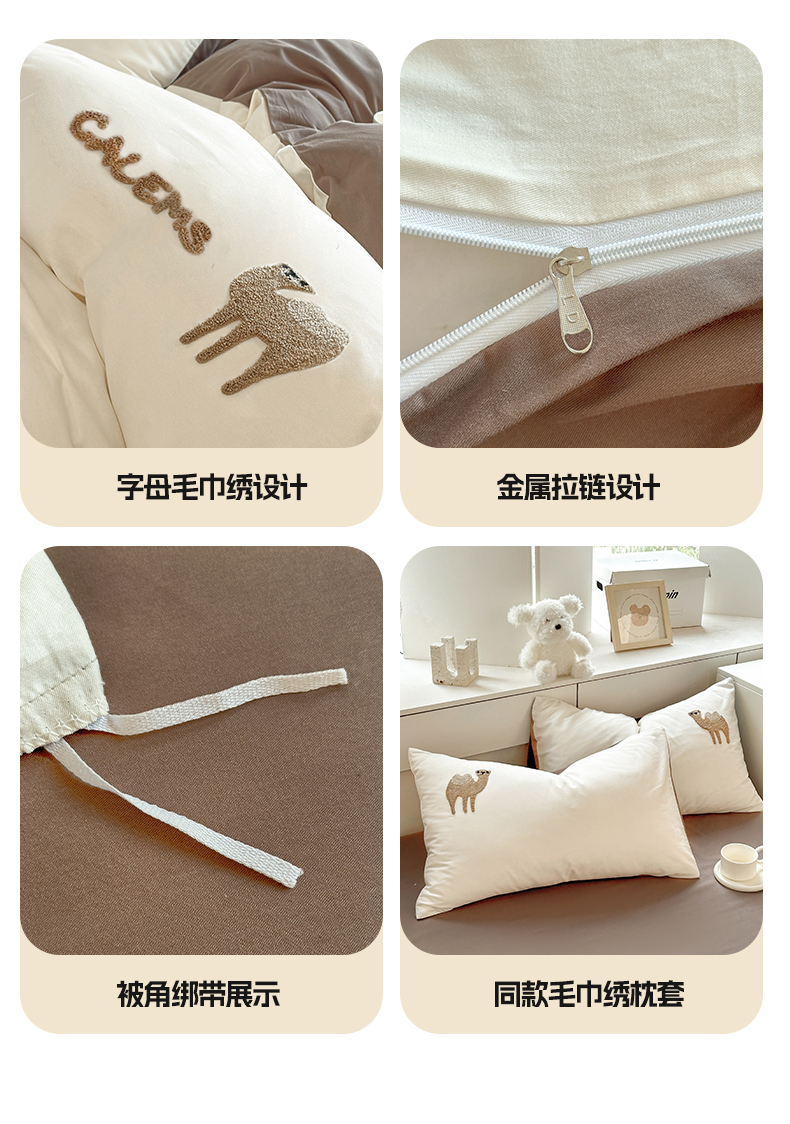 当前位置: 91家纺网 > 商品网购 > 床品套件 > 四件套 > 全棉普通四件套 > 莱登卡奴 2025新款A类全棉13372毛巾绣四件套 骆驼茶褐