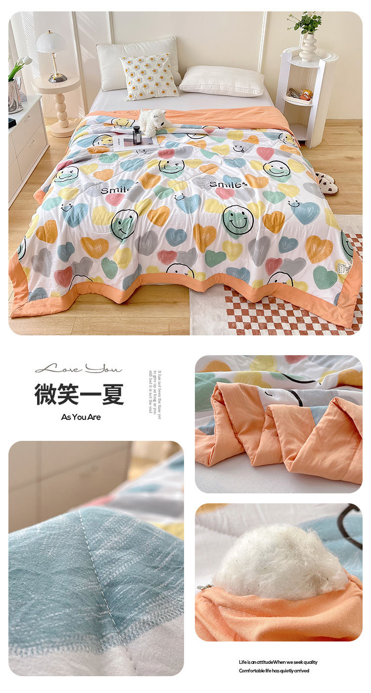 商品名称:鑫棉坊 2025新款A类印花水洗棉棉花夏凉被 微笑一夏