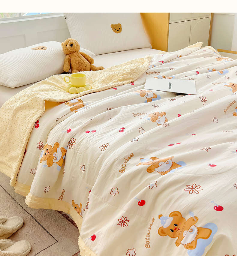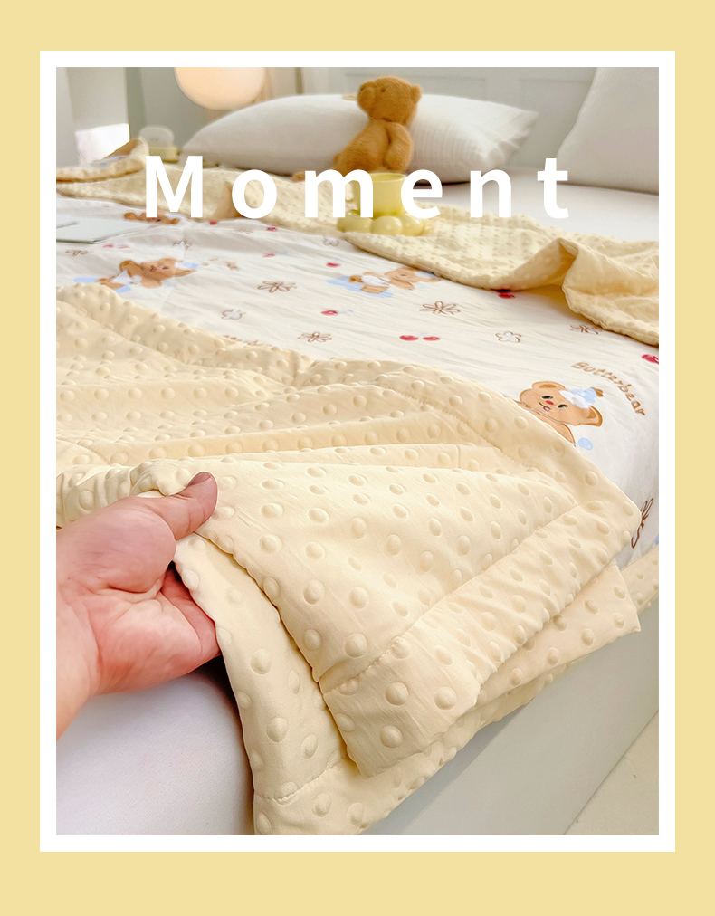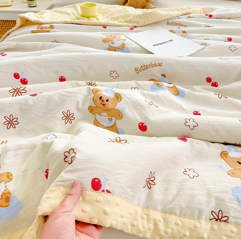商品名称:鑫棉坊 2025新款A类水洗棉豆豆双层纱棉花夏凉被 可爱小熊
