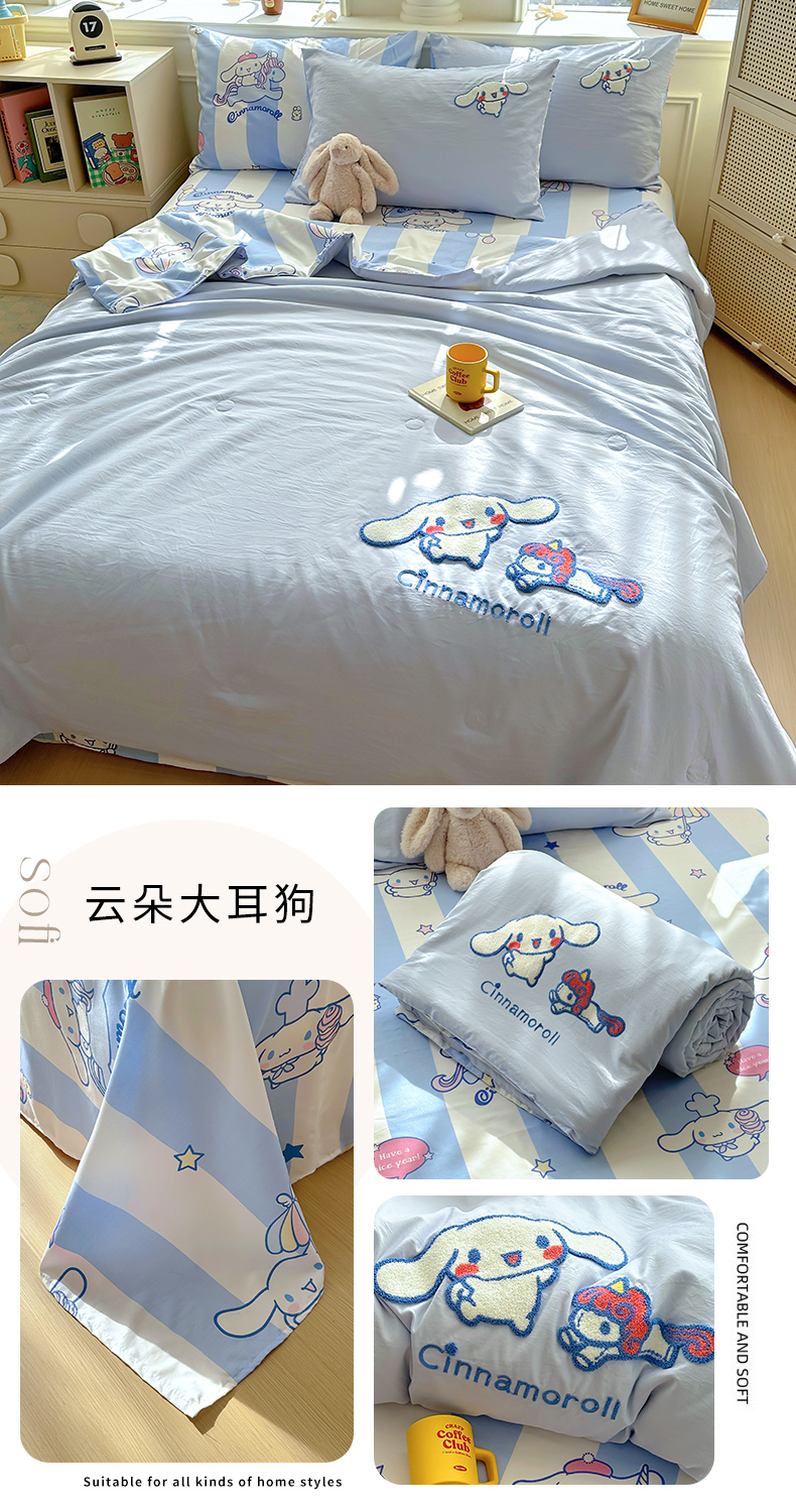 木堇家居 2025春夏三丽鸥云柔棉毛巾绣夏被四件套 毛巾绣-小马大耳狗