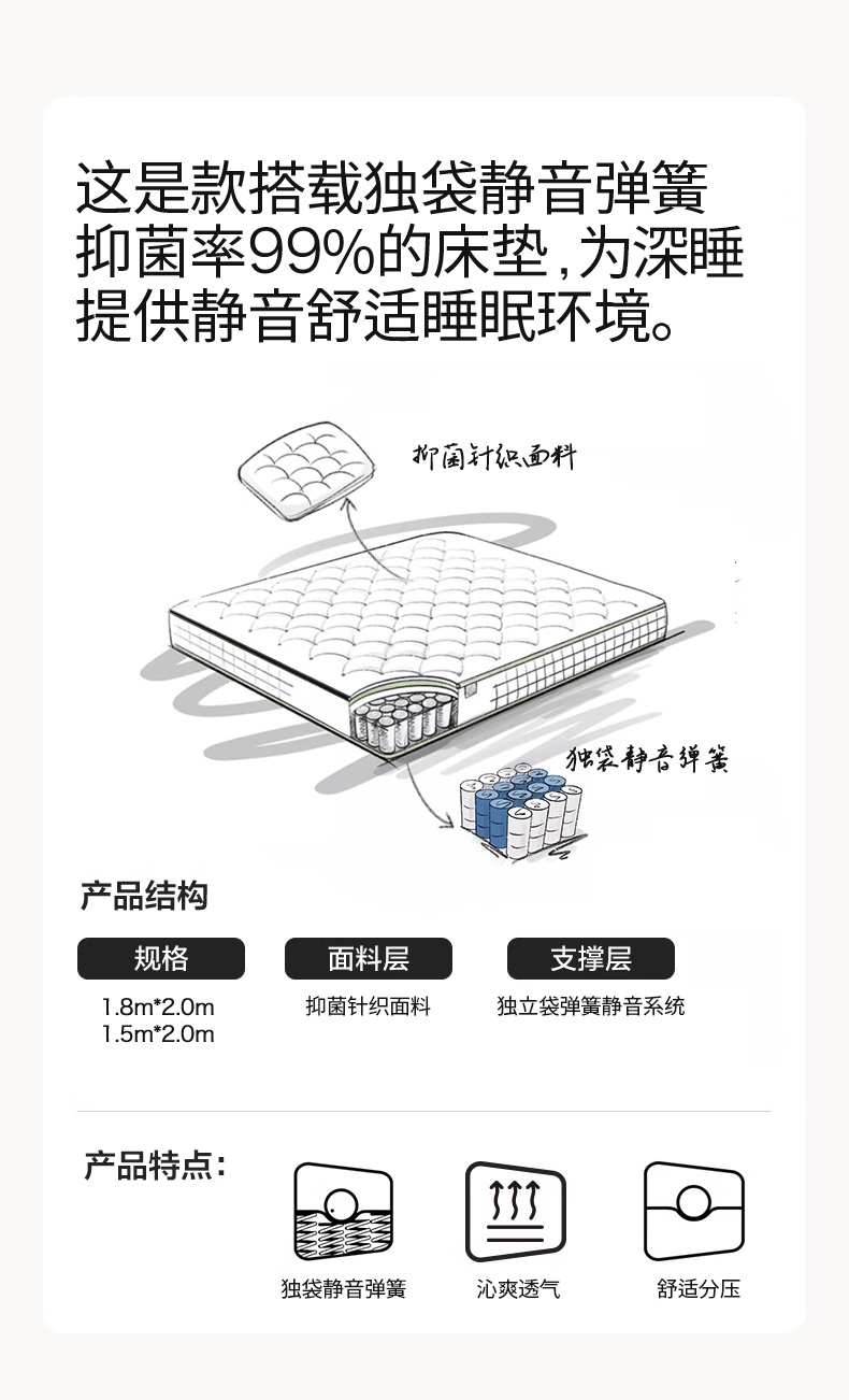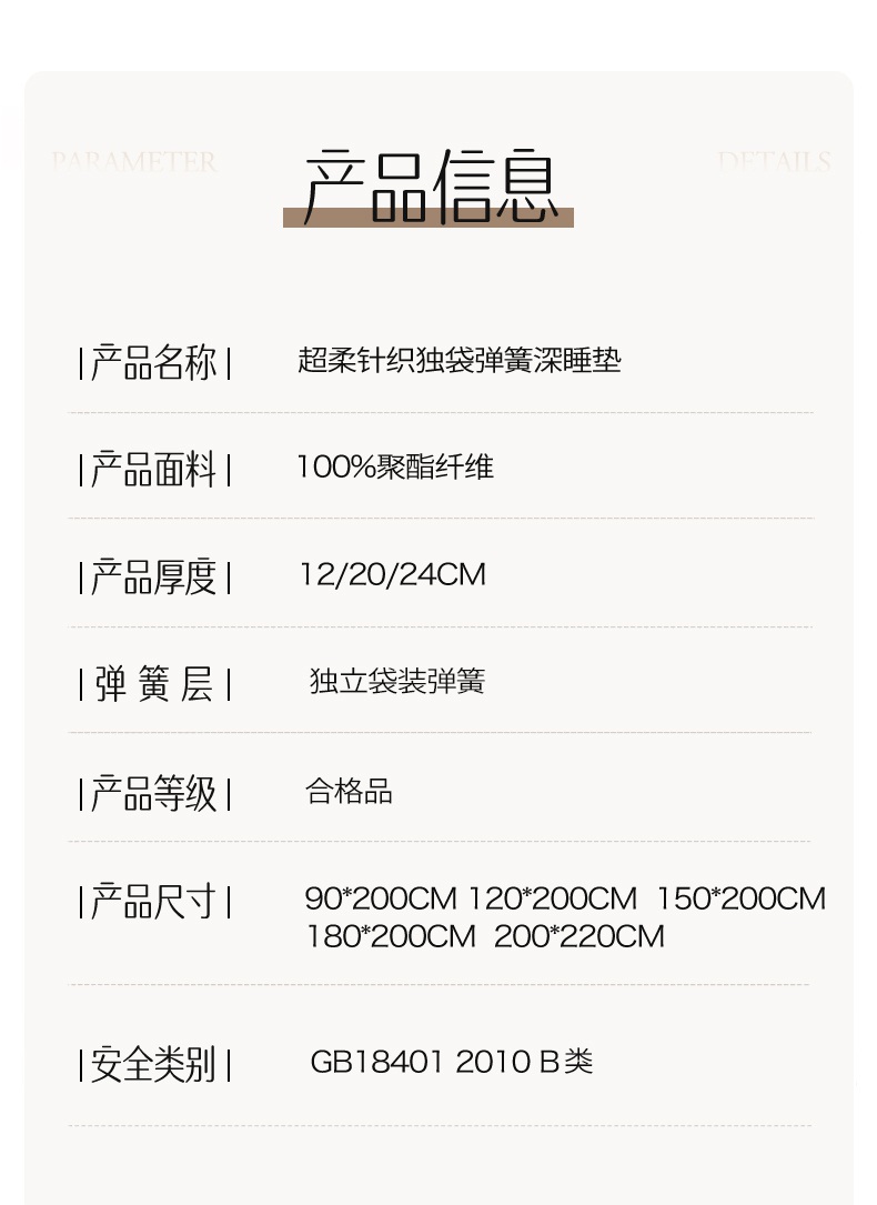 当前位置: 91家纺网 > 商品网购 > 床垫/床褥 > 普通床垫 > 伊先生家纺 2025新款超柔针织独袋弹簧床垫 乐来登弹簧床垫