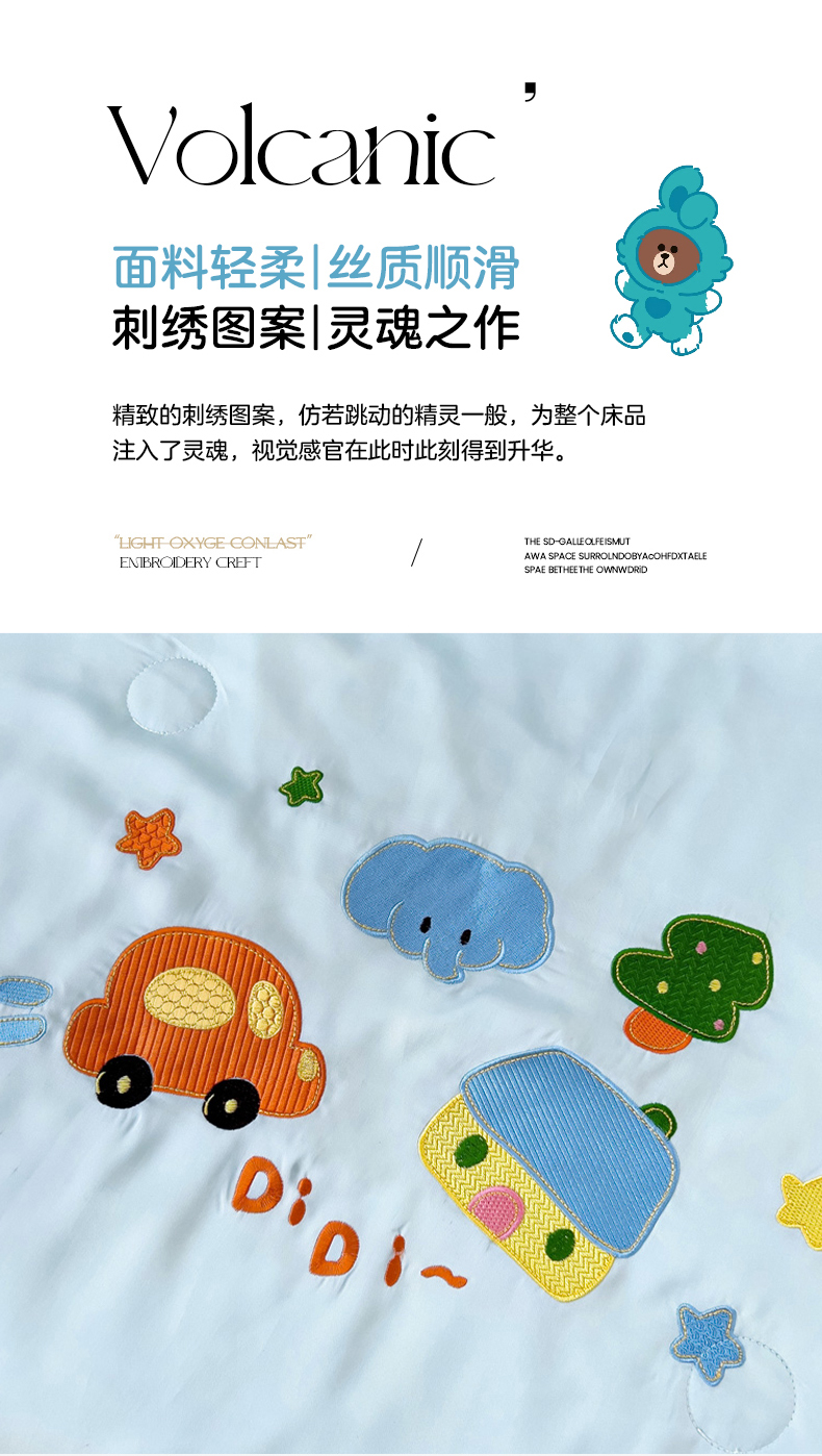 御棉坊 2025新款60S莱赛尔兰精天丝大豆刺绣儿童夏被子被芯 美好假日