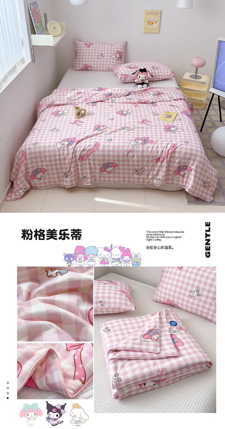 商品名称:木堇家居 2025三丽鸥针织棉麻绳大豆夏被 粉格美乐蒂