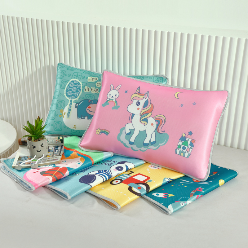 (总)冬巢 2025新款冰丝儿童枕,HAPPY,工程车,梦幻独角兽,水上乐园,太空机器人,熊猫