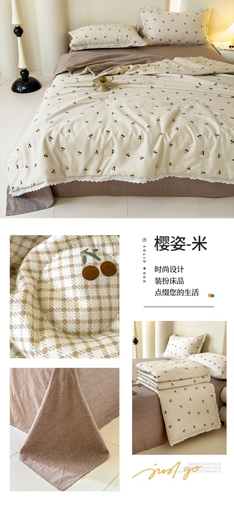 商品名称:被窝家纺 2025新款全棉花边大豆夏被四件套 樱姿-米