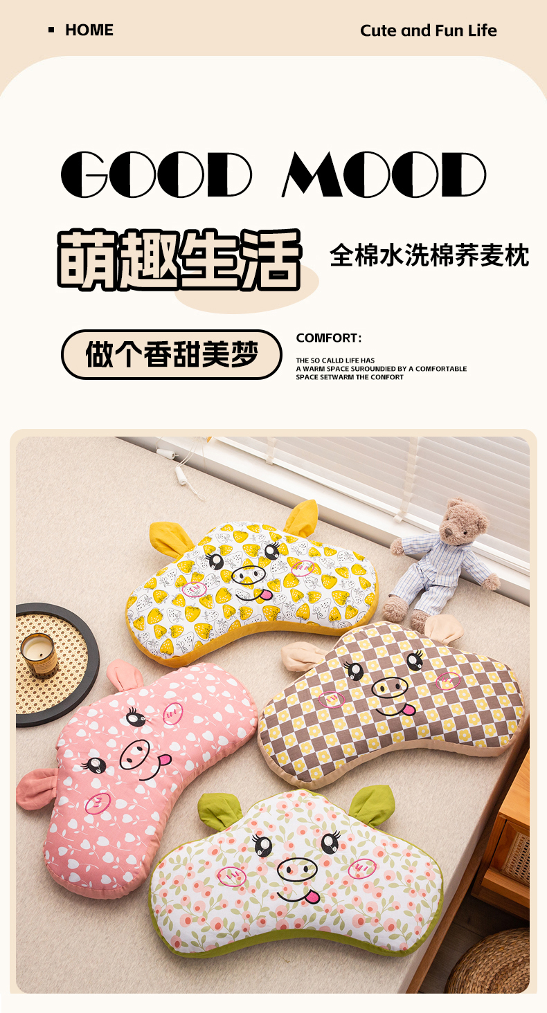 当前位置: 91家纺网 > 商品网购 > 枕头/枕芯/保健枕/颈椎枕 > 明星枕业 2025新款全棉儿童卡通荞麦枕全荞麦护颈枕 呆萌猪绿