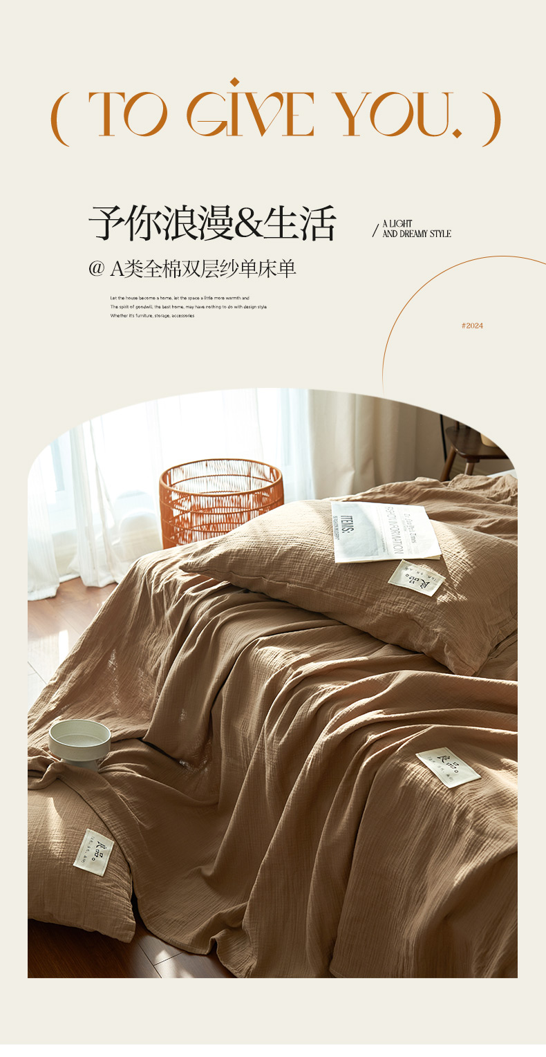 当前位置: 91家纺网 > 商品网购 > 床上用品 > 床单 > 寐绸家纺 2025新款纯棉双层纱单床单 双层纱床单-褐色
