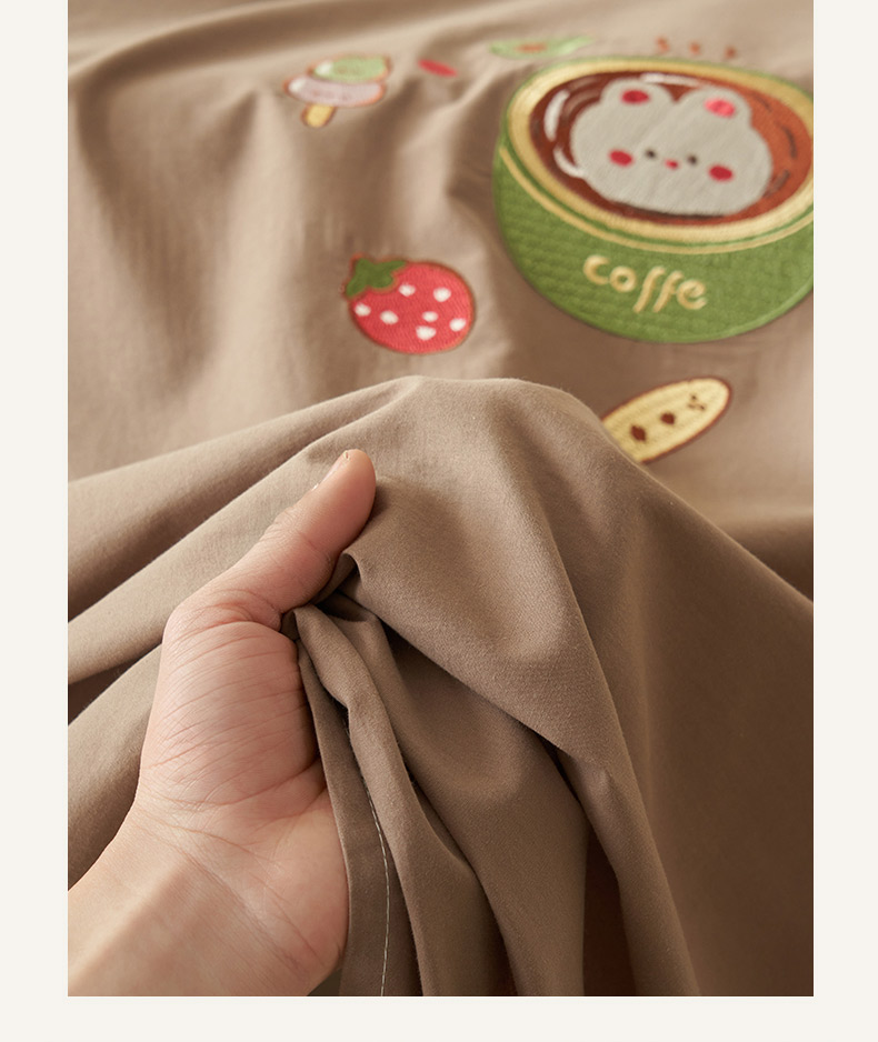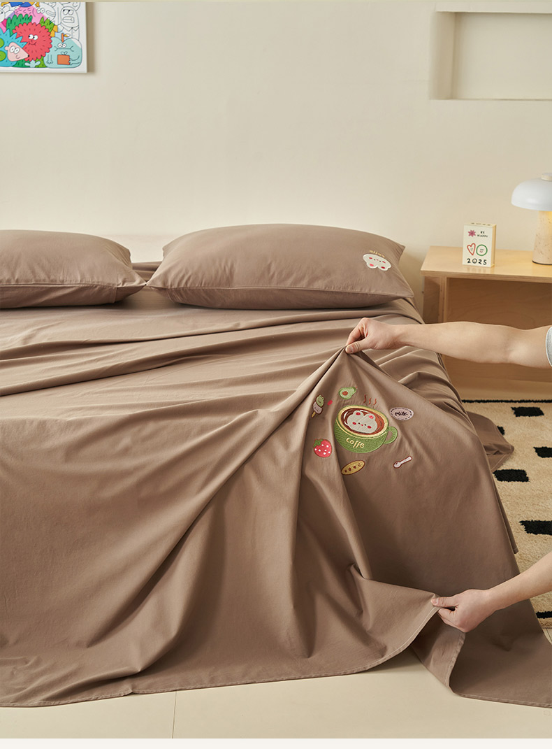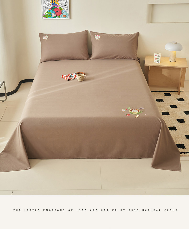 寐绸家纺 2025新款纯棉水洗棉纯色绣花单床单 纯棉绣花床单-棕色