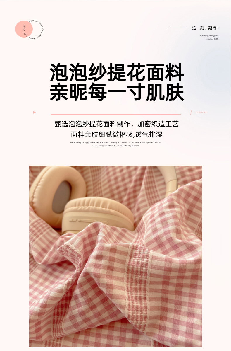 商品名称:(总)十里居 2025新款泡泡纱提花韩版水洗棉公主格花边款四件套