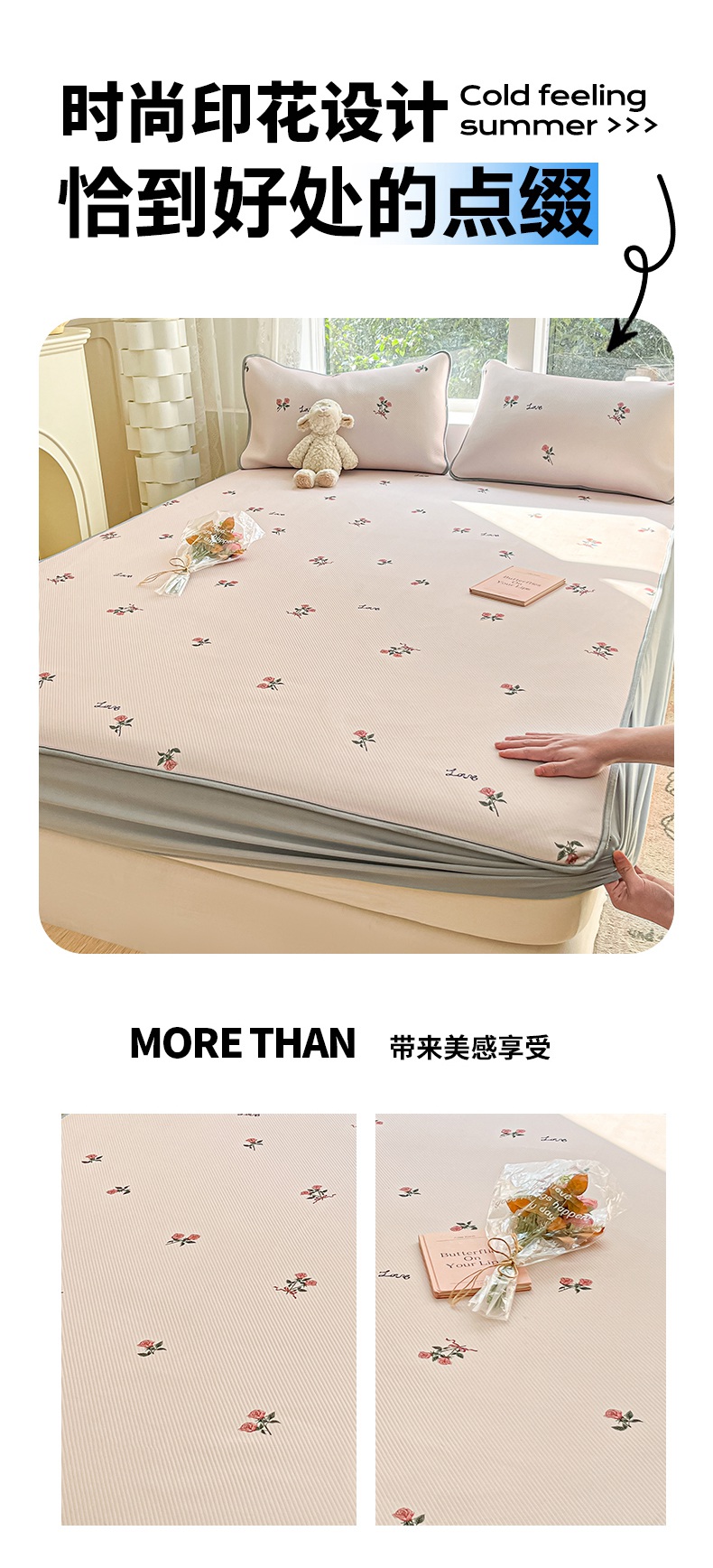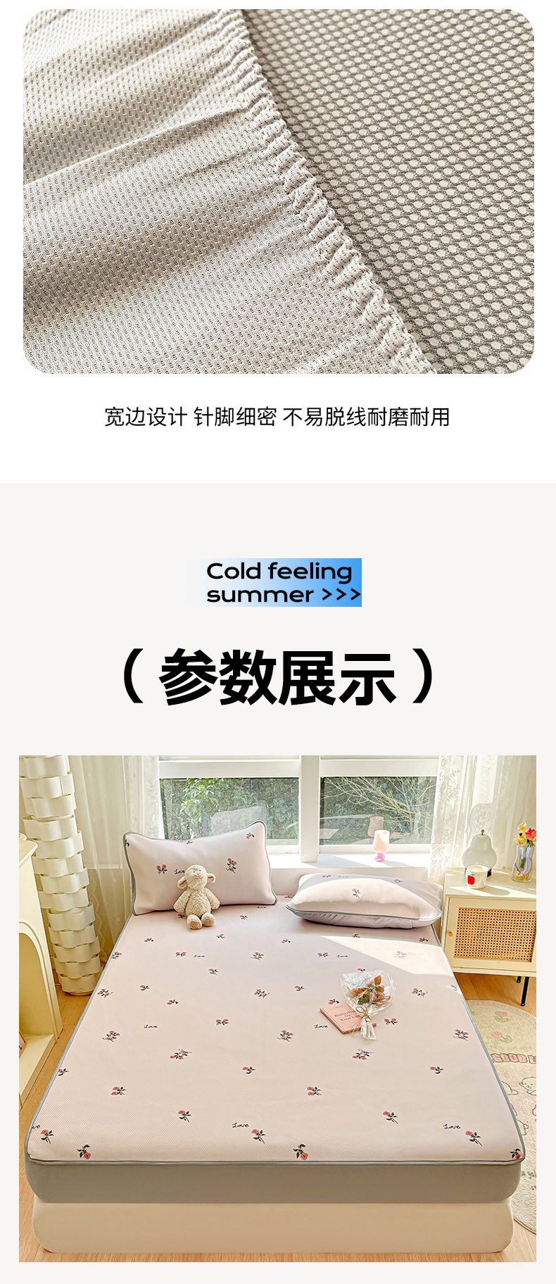 星座家纺 2025新款大斜纹复合冰丝凉席-床笠款 尤克克里粉-床笠款