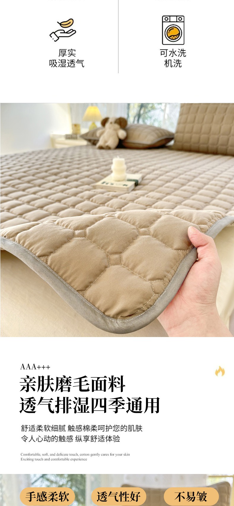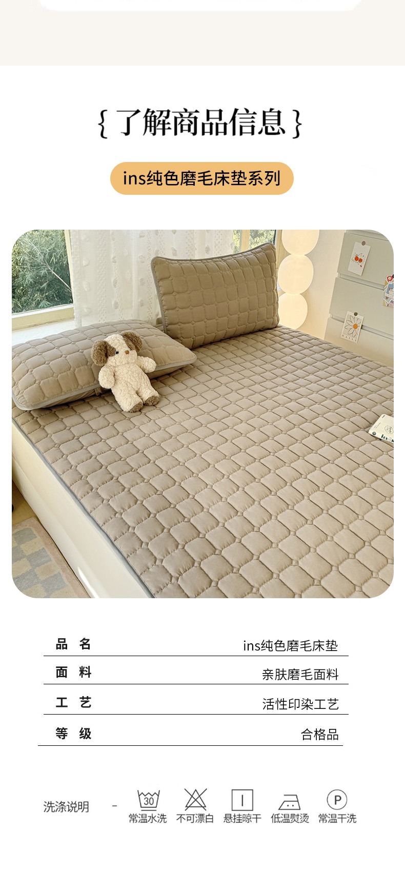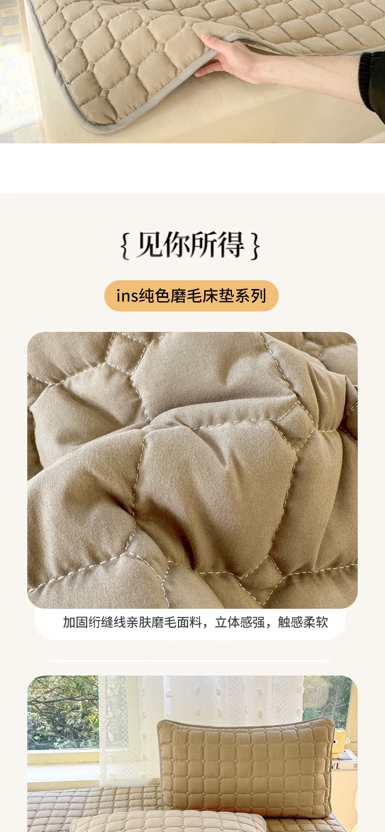 当前位置: 91家纺网 > 商品网购 > 床垫/床褥 > 普通床垫 > 麒东家纺 2025新款ins纯色磨毛夹棉床垫 米咖