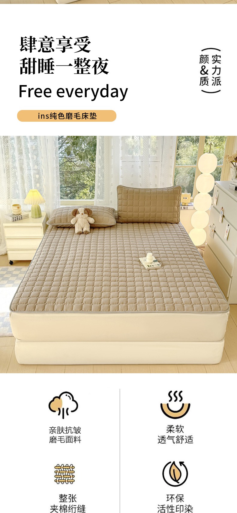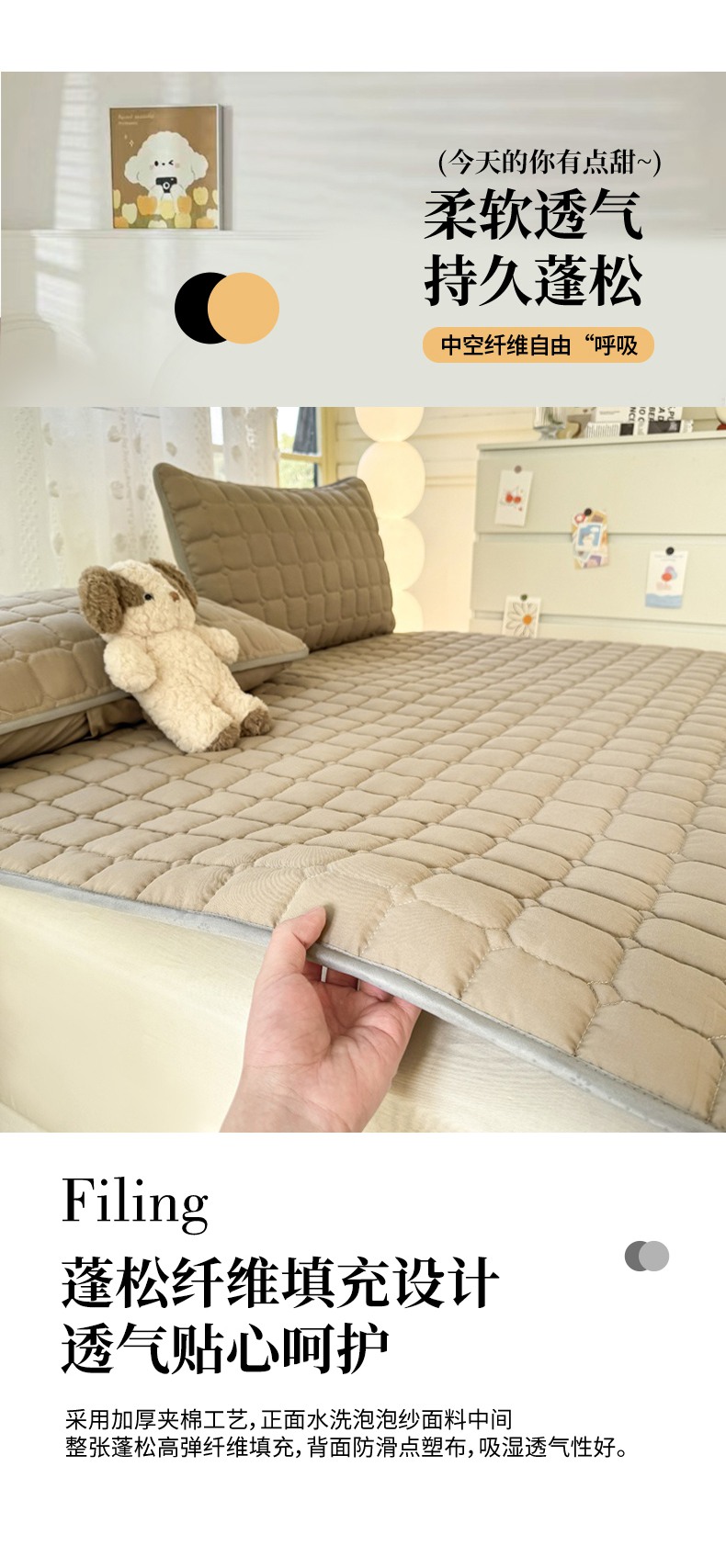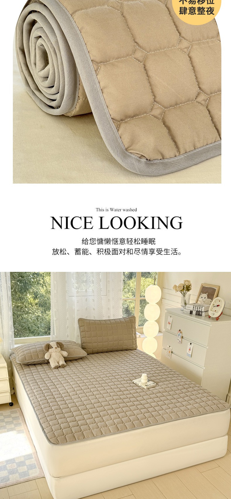 当前位置: 91家纺网 > 商品网购 > 床垫/床褥 > 普通床垫 > 麒东家纺 2025新款ins纯色磨毛夹棉床垫 米咖