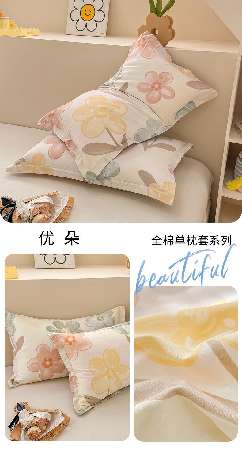 绵庭家纺 2025新款12868全棉套件单品系列二单枕套 叶伴花开