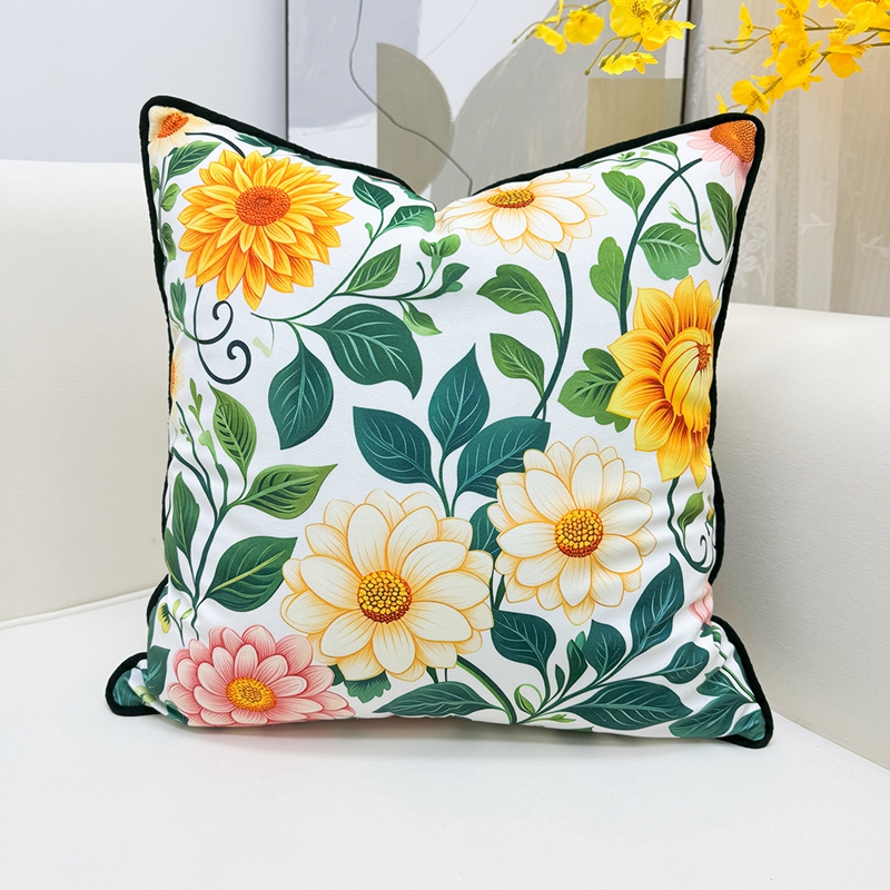 商品名称:爱家居 2025新款抱枕沙发新中式靠垫轻奢高级感靠枕床头大靠背正方形抱枕套卡通花卉 太阳之花