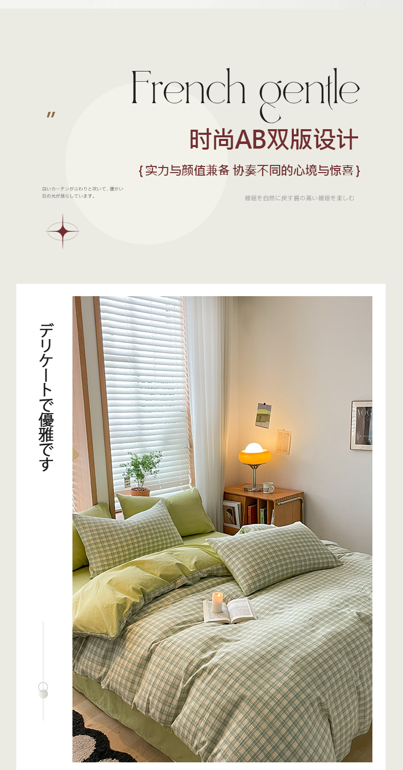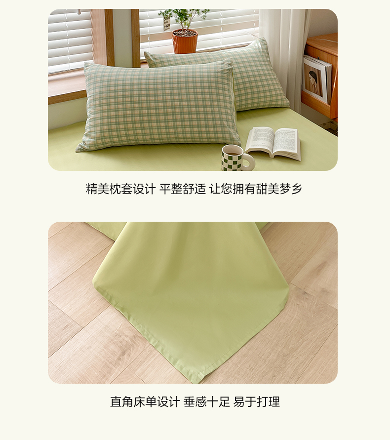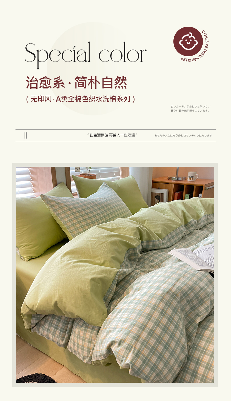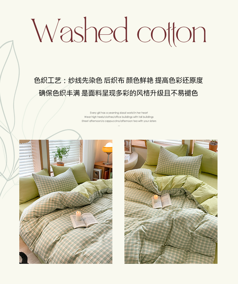 卡巴伦家纺 2025新款A版色织32支B版40支纯棉A类水洗棉四件套单被套 蓝图-绿