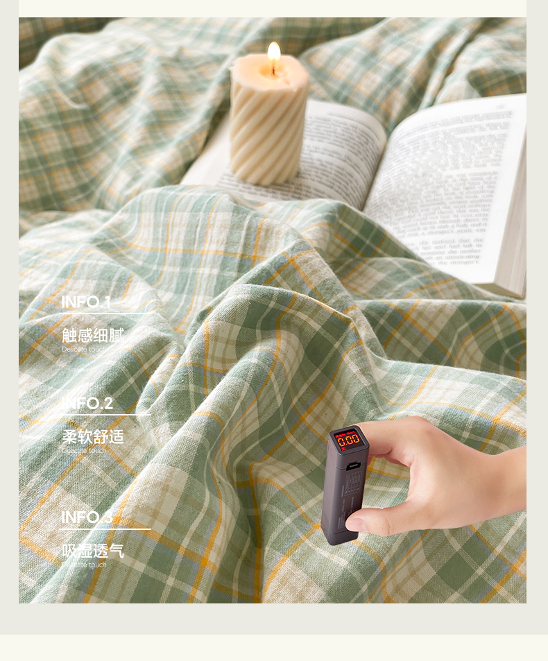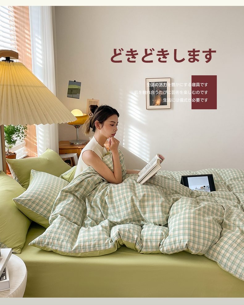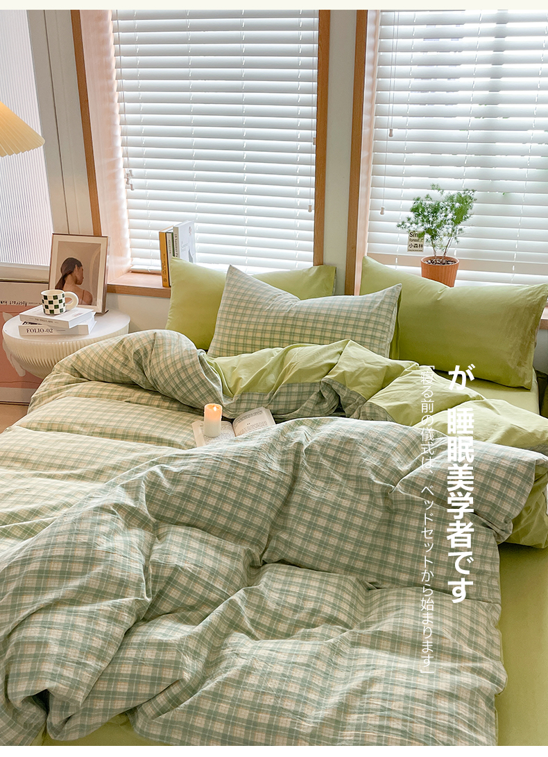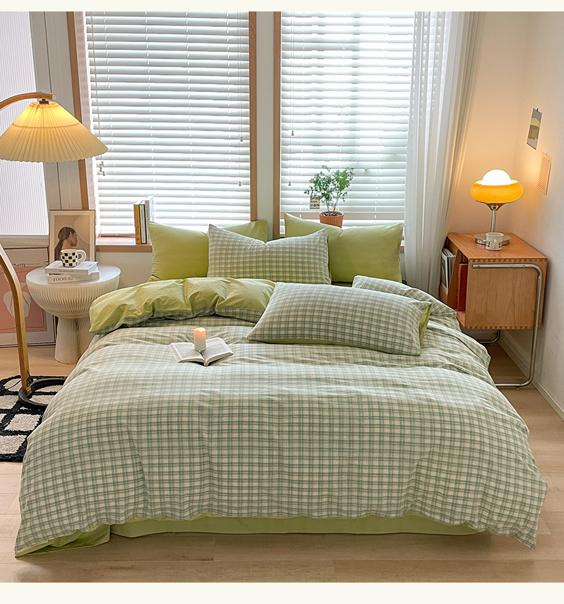 卡巴伦家纺 2025新款A版色织32支B版40支纯棉A类水洗棉四件套单被套 蓝图-绿