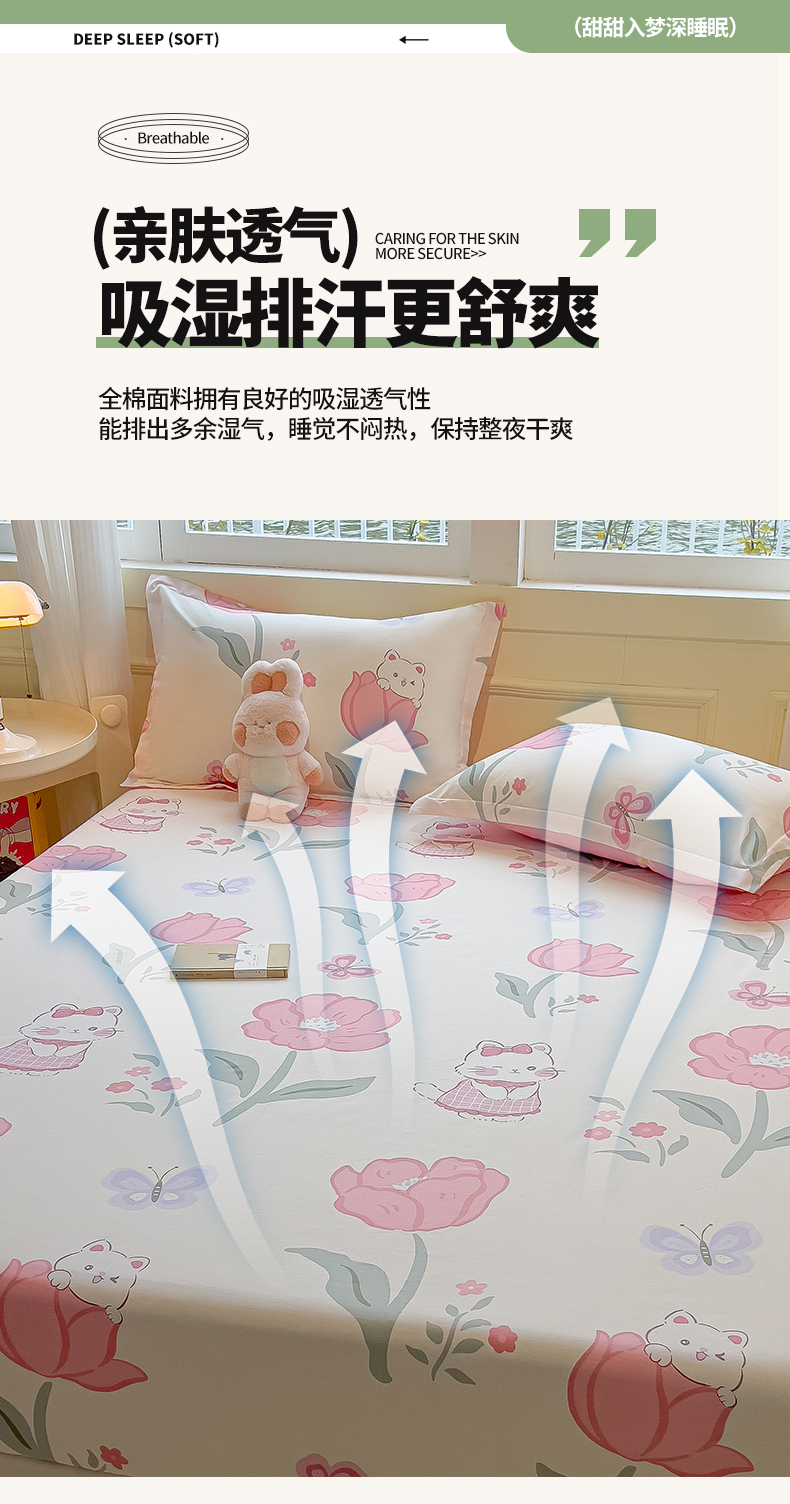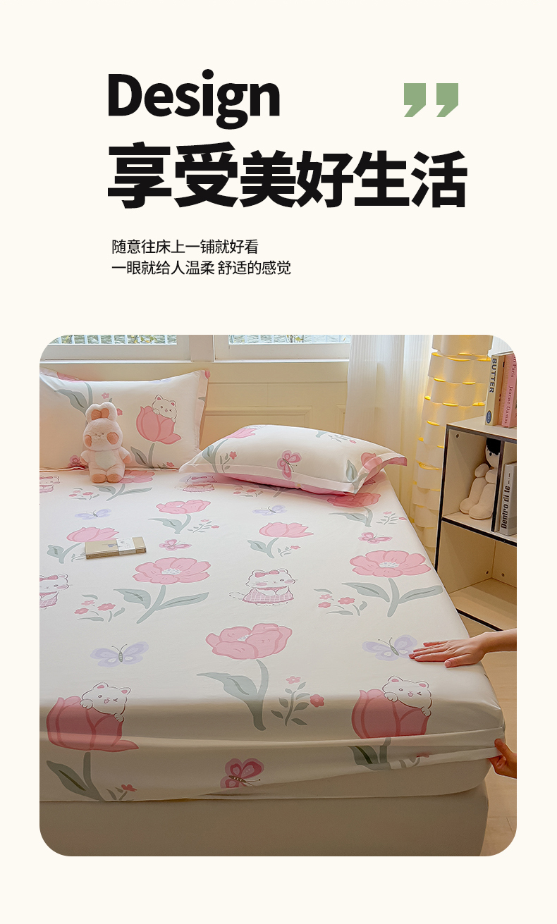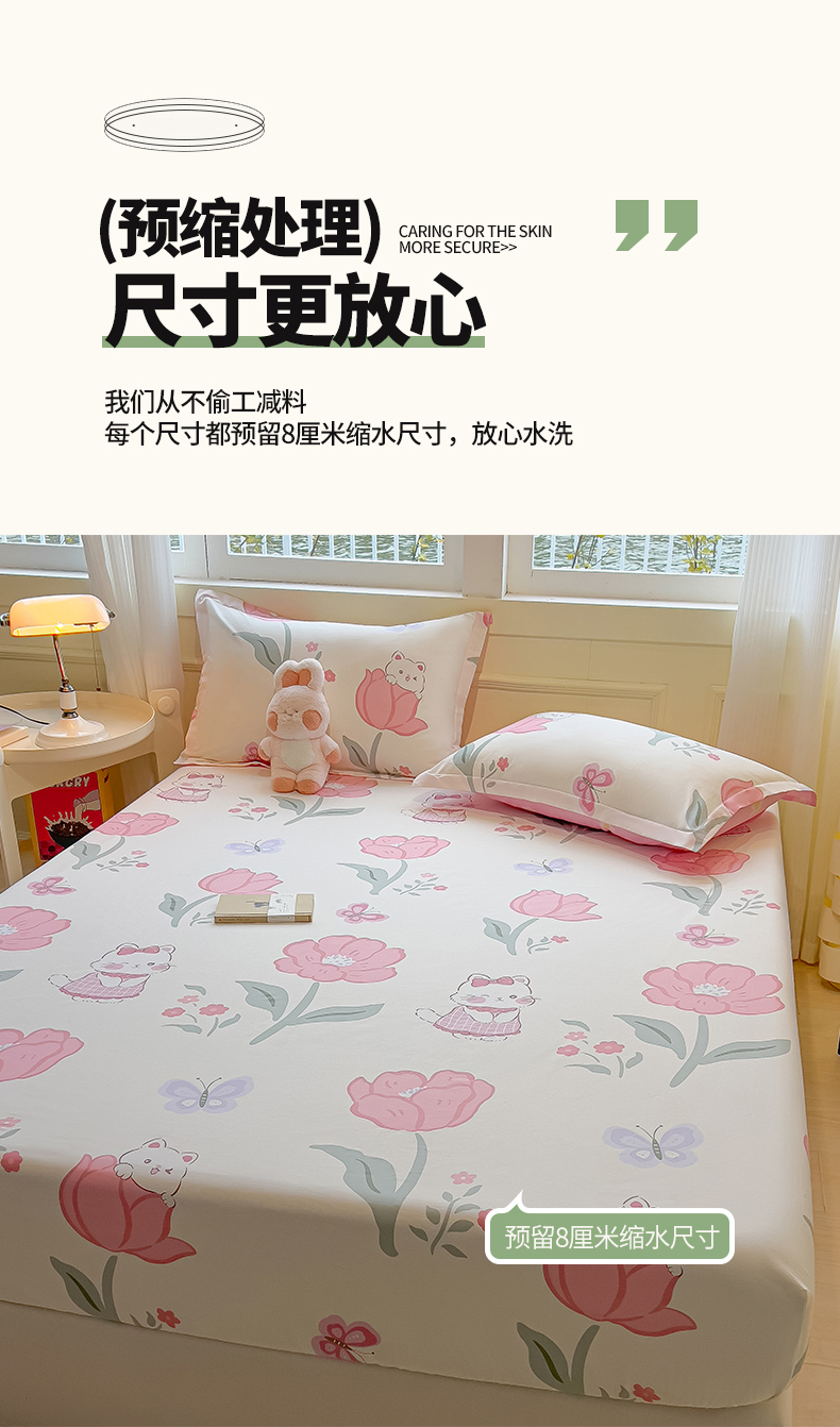 拾物记 2025新款A类无荧光全喷气全棉12868单床笠 花欣猫趣-粉