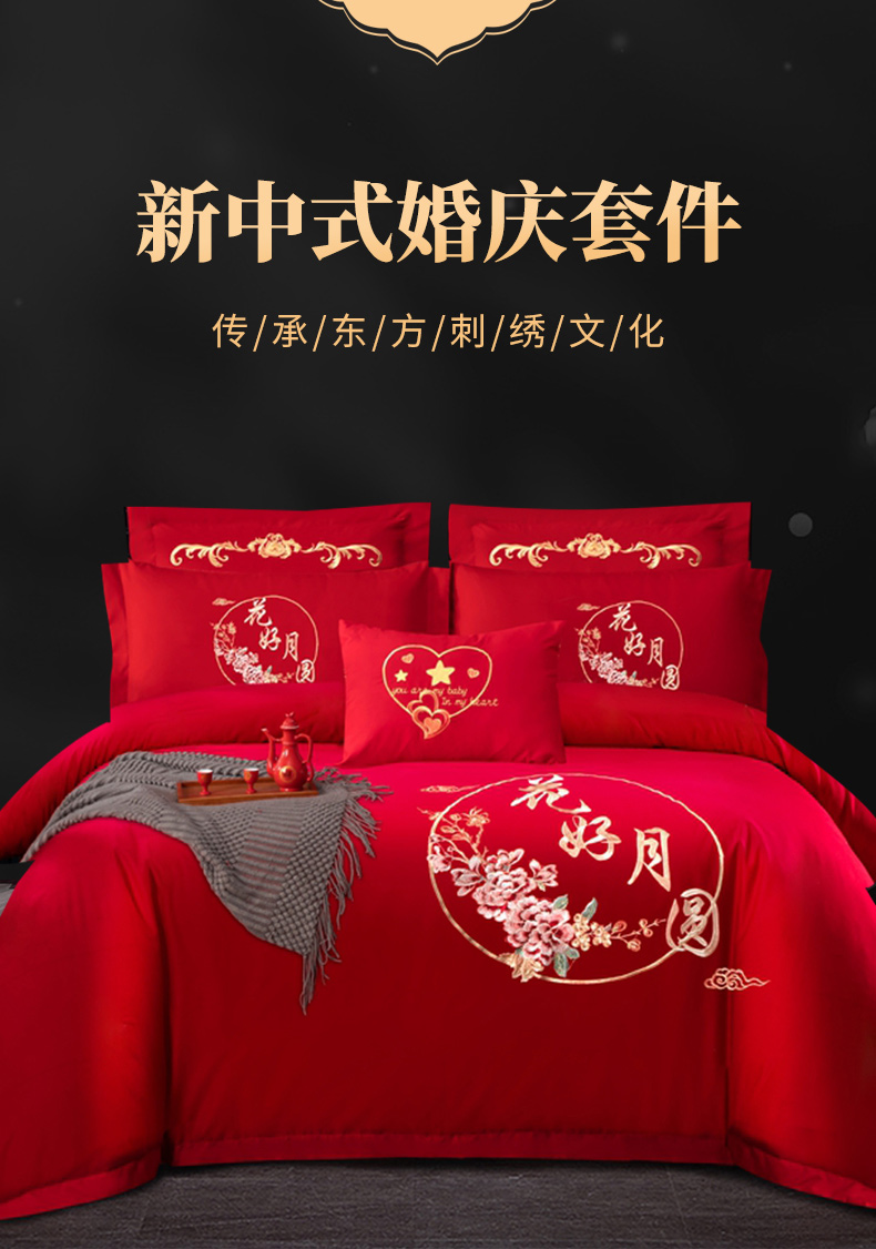 当前位置: 91家纺网 > 商品网购 > 床品套件 > 四件套 > 婚庆四件套 > 慕她家纺 慕她婚庆四件套大红色磨毛亲肤棉刺绣结婚工艺款床上用品 花好月圆