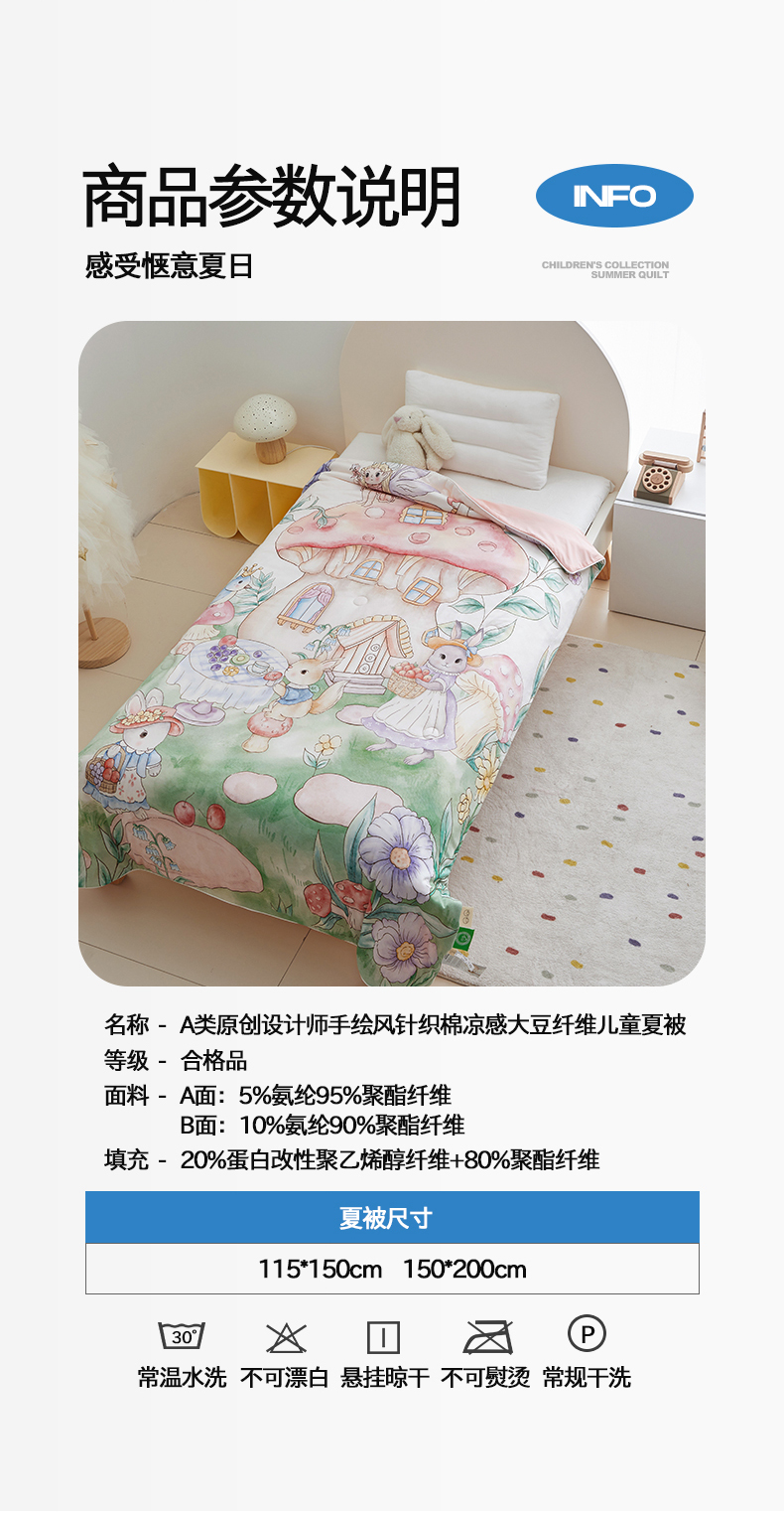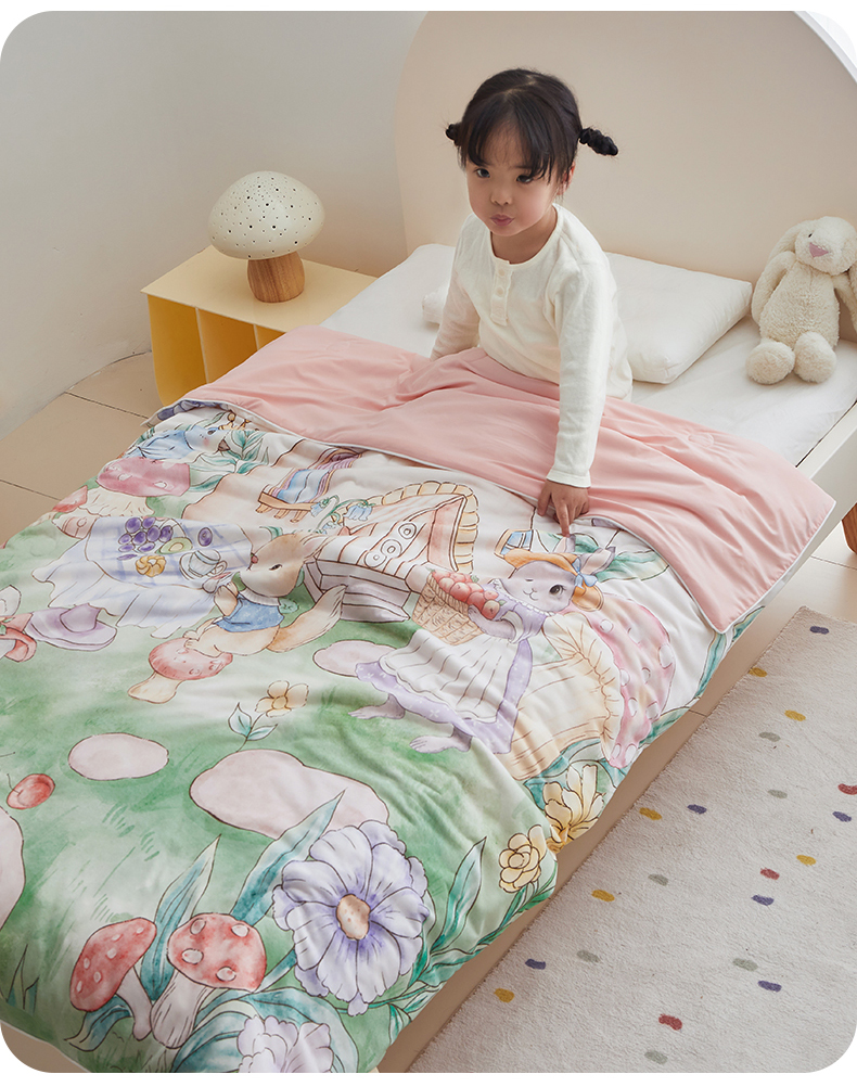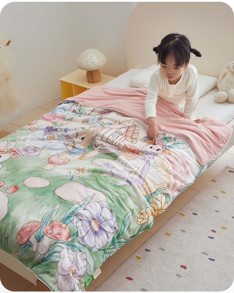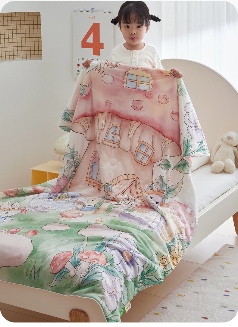 商品名称:荷马之梦 2025新款A类原创手绘风针织棉凉感大豆儿童夏被 蘑菇下午茶