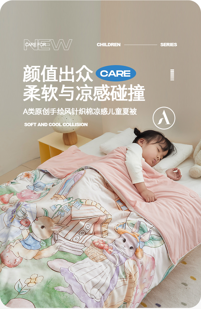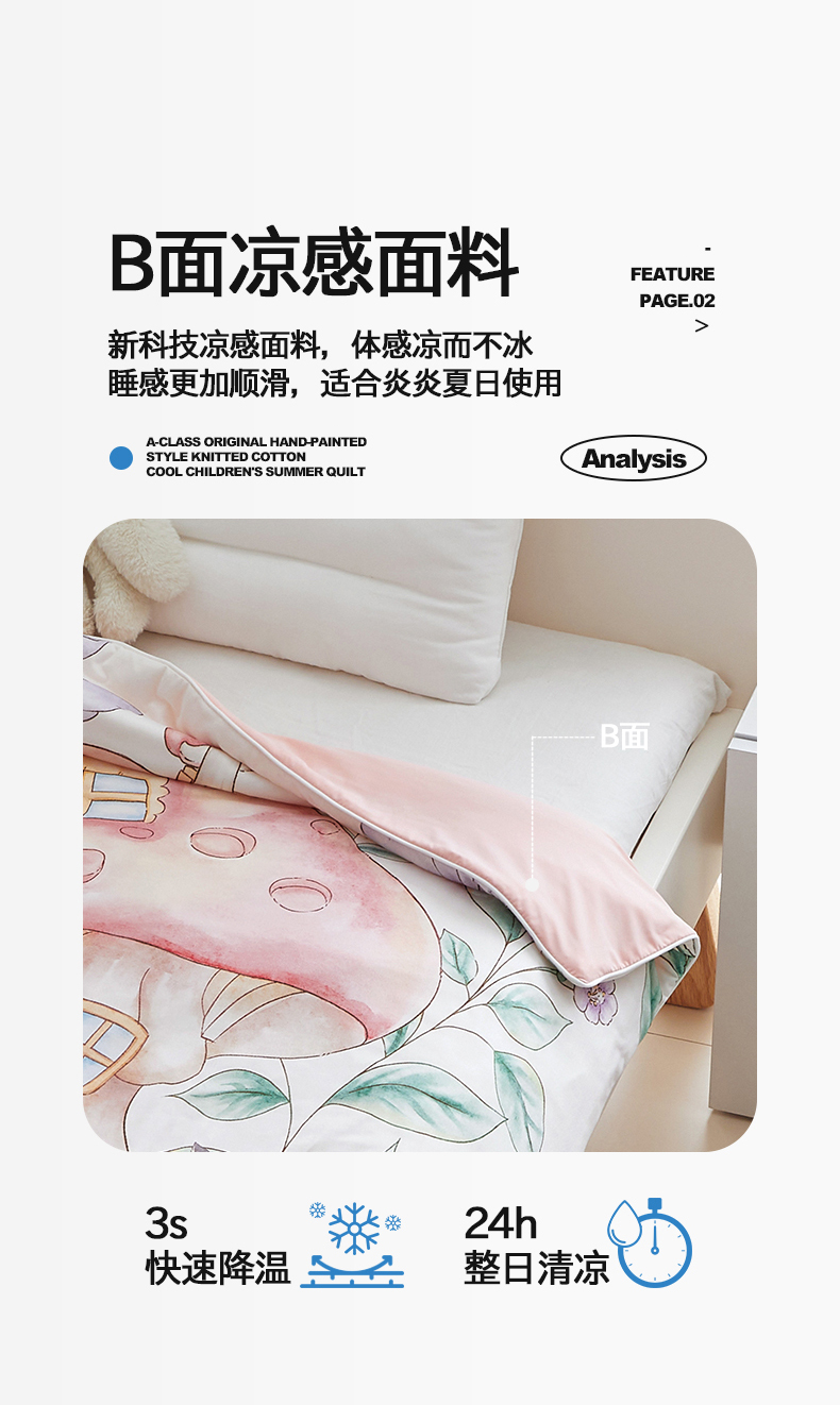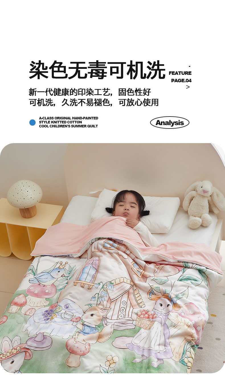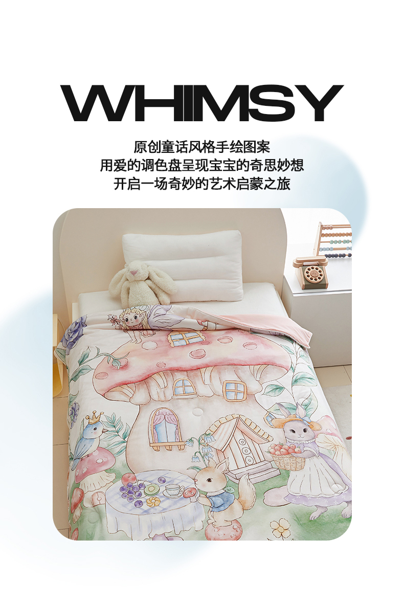 商品名称:荷马之梦 2025新款A类原创手绘风针织棉凉感大豆儿童夏被 蘑菇下午茶