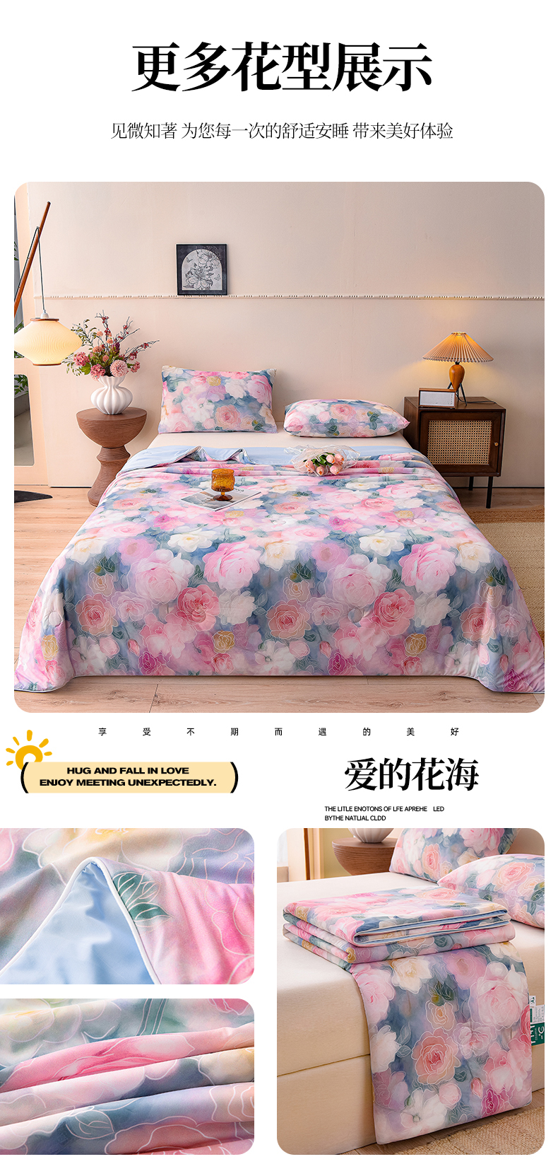 (总)曼尼 2025新款印花凉感丝夏被夏凉被,爱的花海,爱丽丝,繁花映彩,国色天香,郁金香,玫瑰的故事,莫奈花园,蔷薇花开-紫,岁月静好,微微安,紫苏