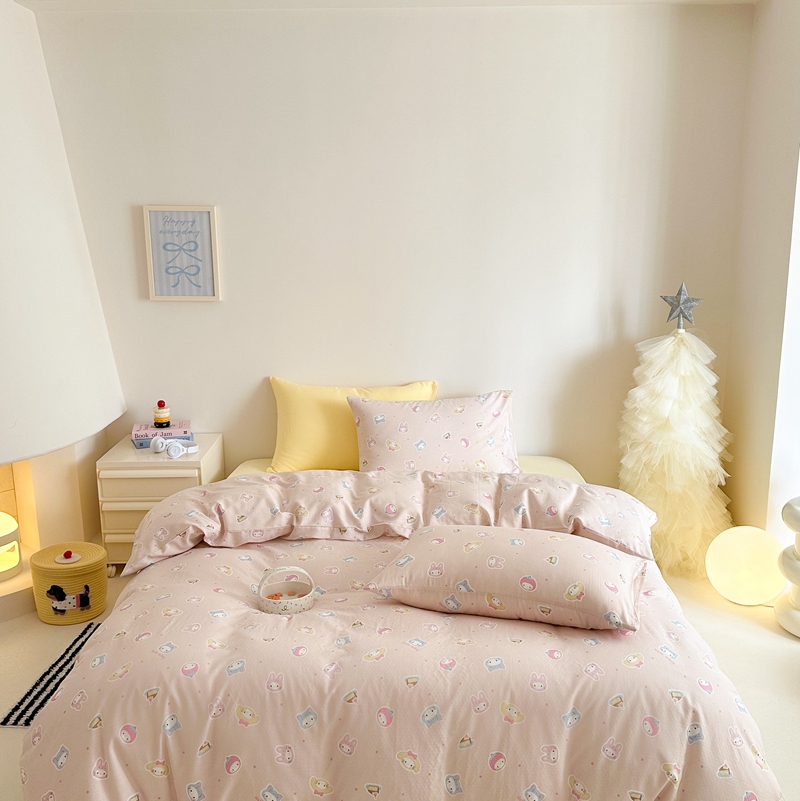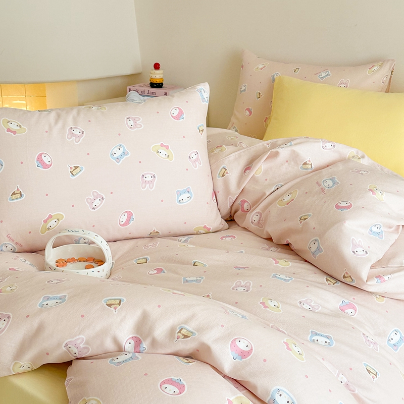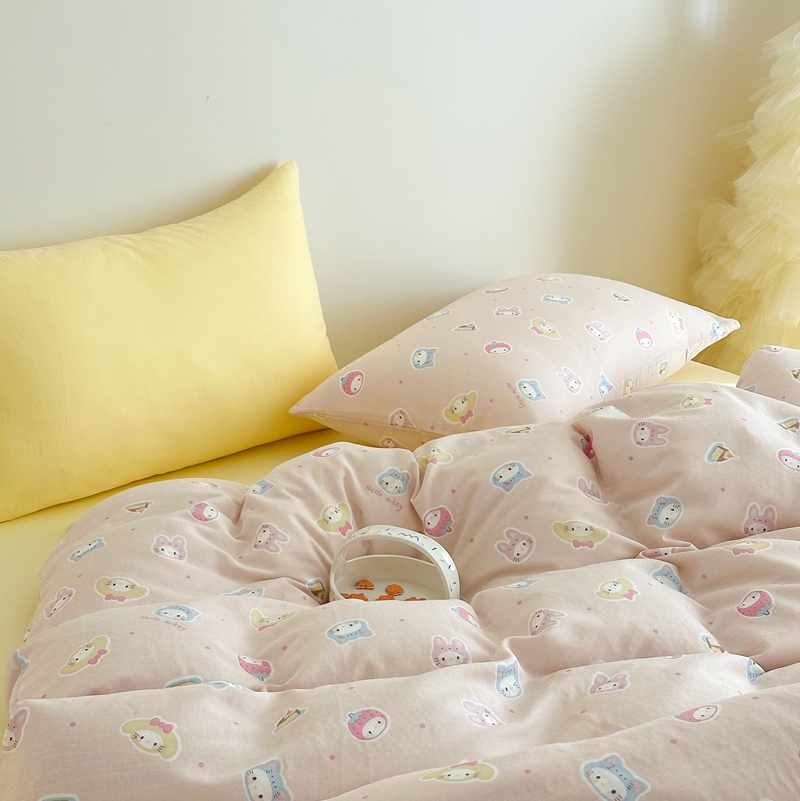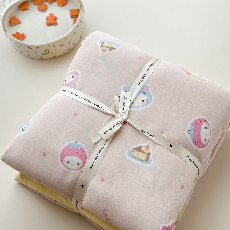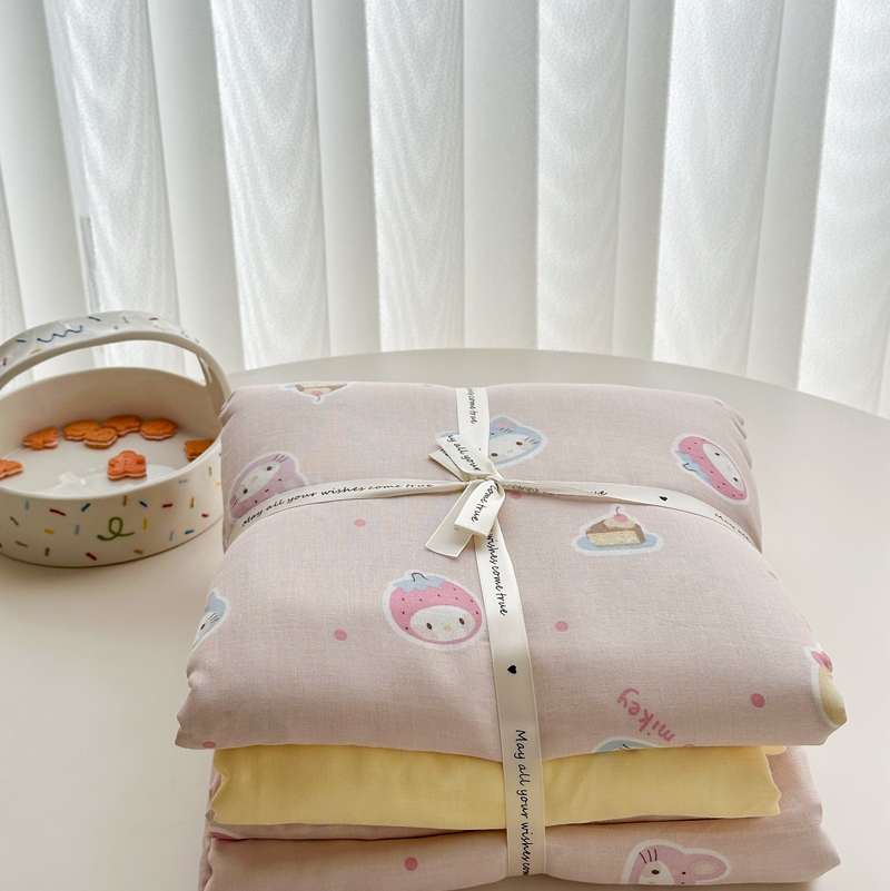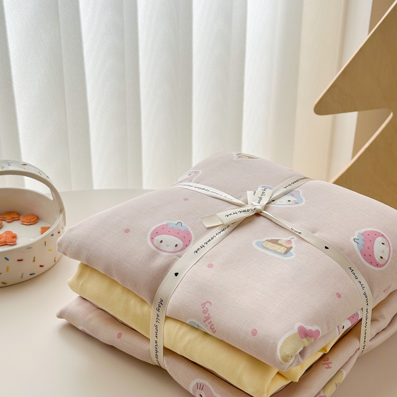 商品名称:桃喜 2025新款春夏双层纱卡通系列四件套 水果猫