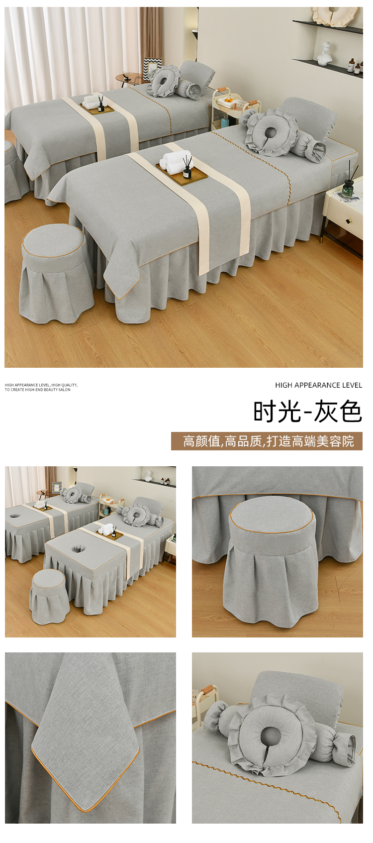 芙怡 2025春夏新款8029款A棉麻B全棉美容床罩四件套-时光系列 时光-灰