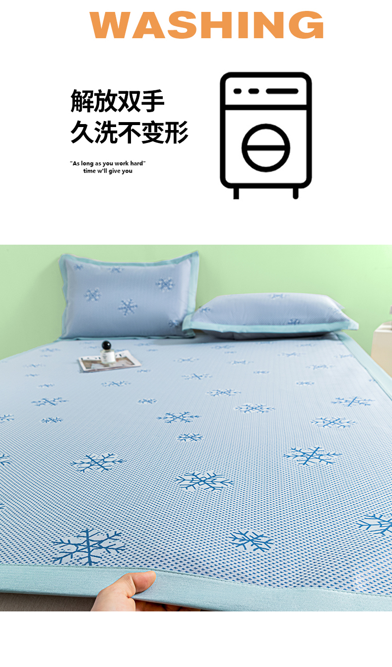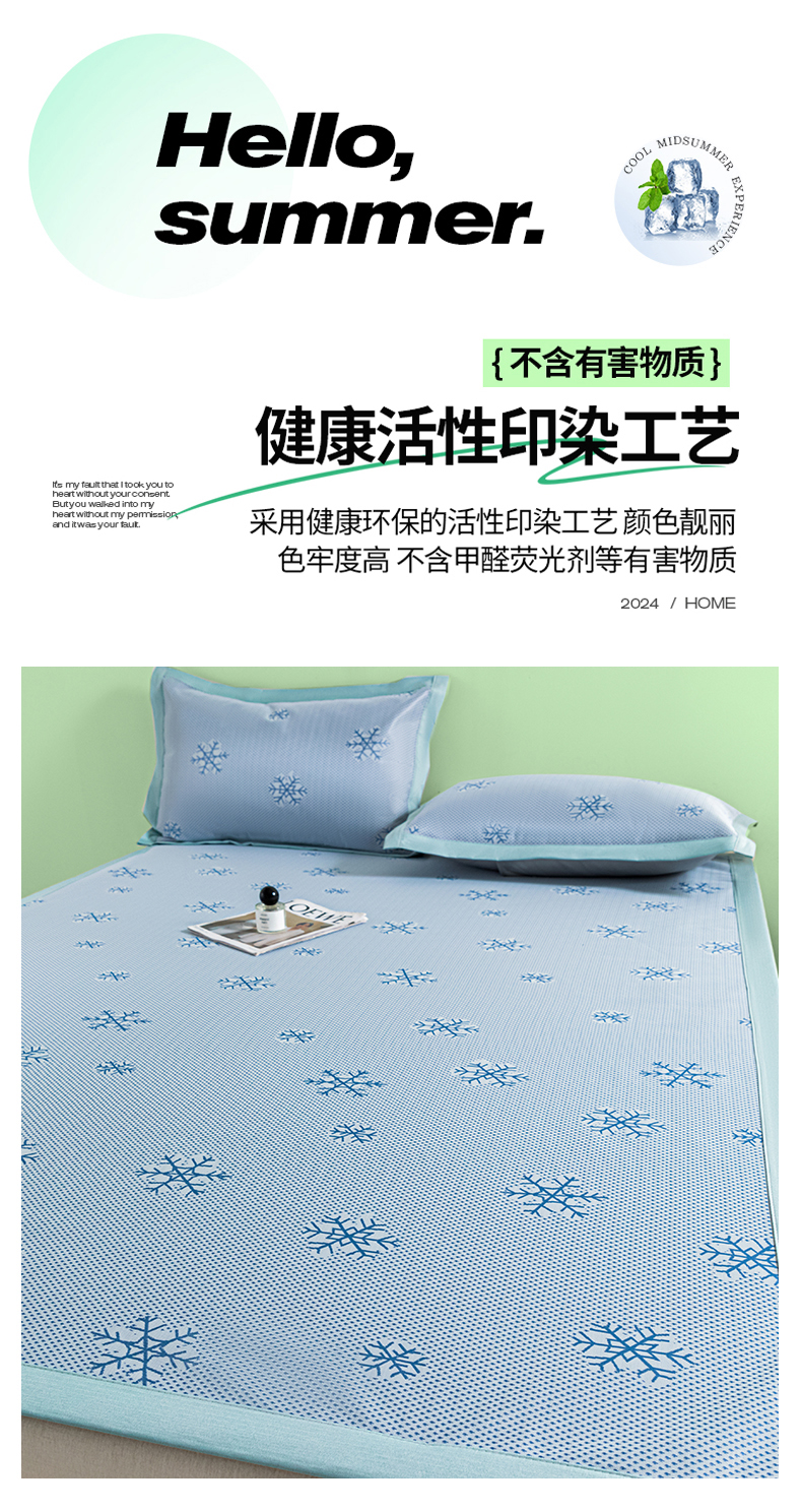 商品名称:阿亮家居 2025新款凉席碳光席冰丝席三件套 雪花-蓝色