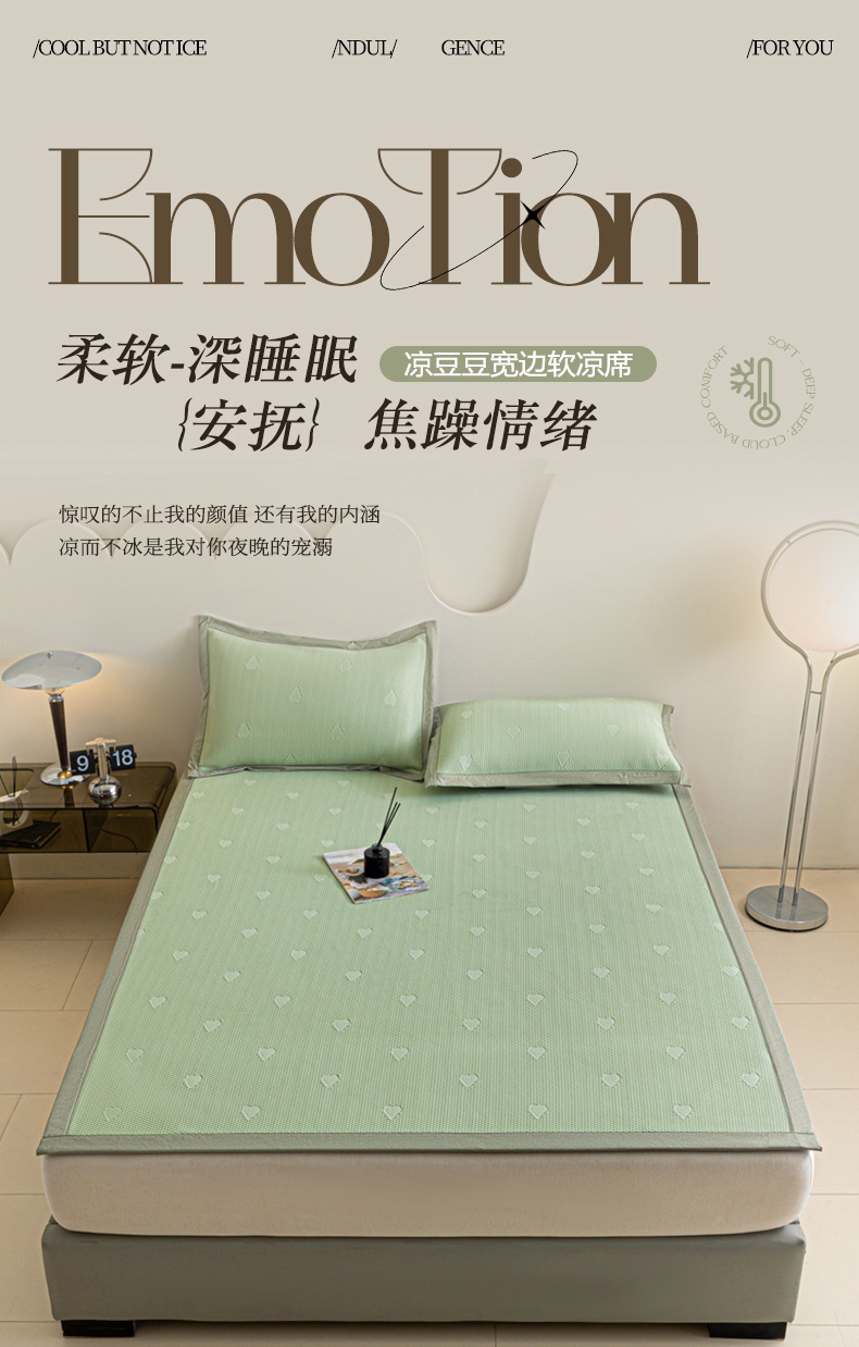 商品名称:阿亮家居 2025新款凉席凉豆豆软席床席款 心相印-梵克绿