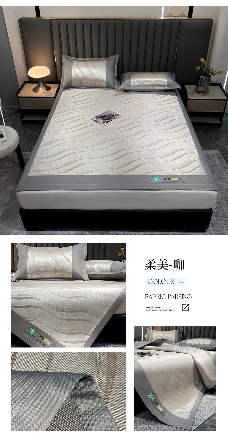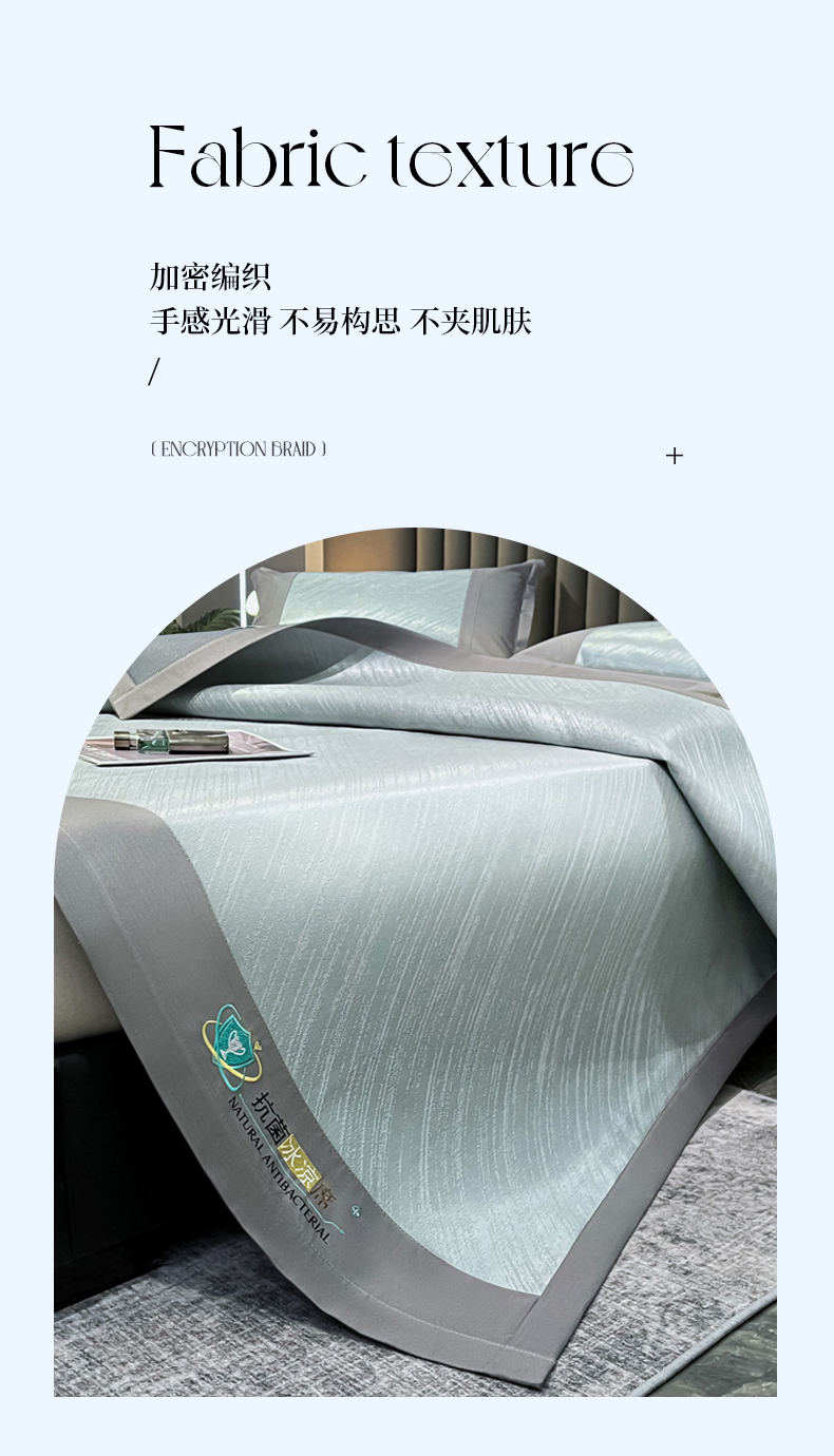 (总)阿亮家居 2025新款A类母婴级1800D碳光小鹿冰丝席凉席,宾利蓝,冰川灰,繁星绿,山茶粉,香槟金