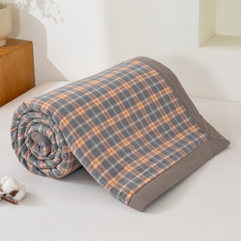 牛牛家纺 2025新款色织水洗棉花被 简格-灰