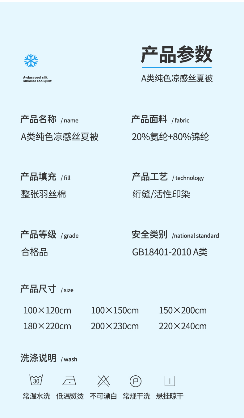 商品名称:芊梵 2025新款凉感丝夏被20%氨纶+80%锦纶夏凉被空调被 冰山蓝