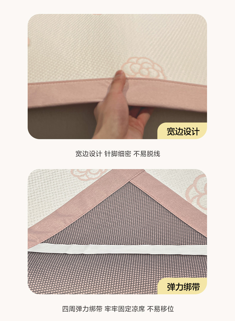 雅居纺家纺 2025春夏新款A类加厚三明治底提花凉感席床席款 山茶花