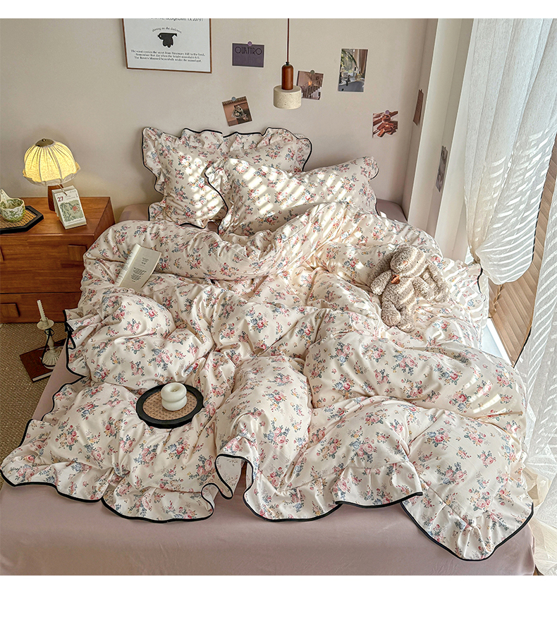 当前位置: 91家纺网 > 商品网购 > 床品套件 > 四件套 > 双层纱四件套 > 麦瑞家纺 2025新款A类韩版花边针织双层纱四件套 蜜糖日记