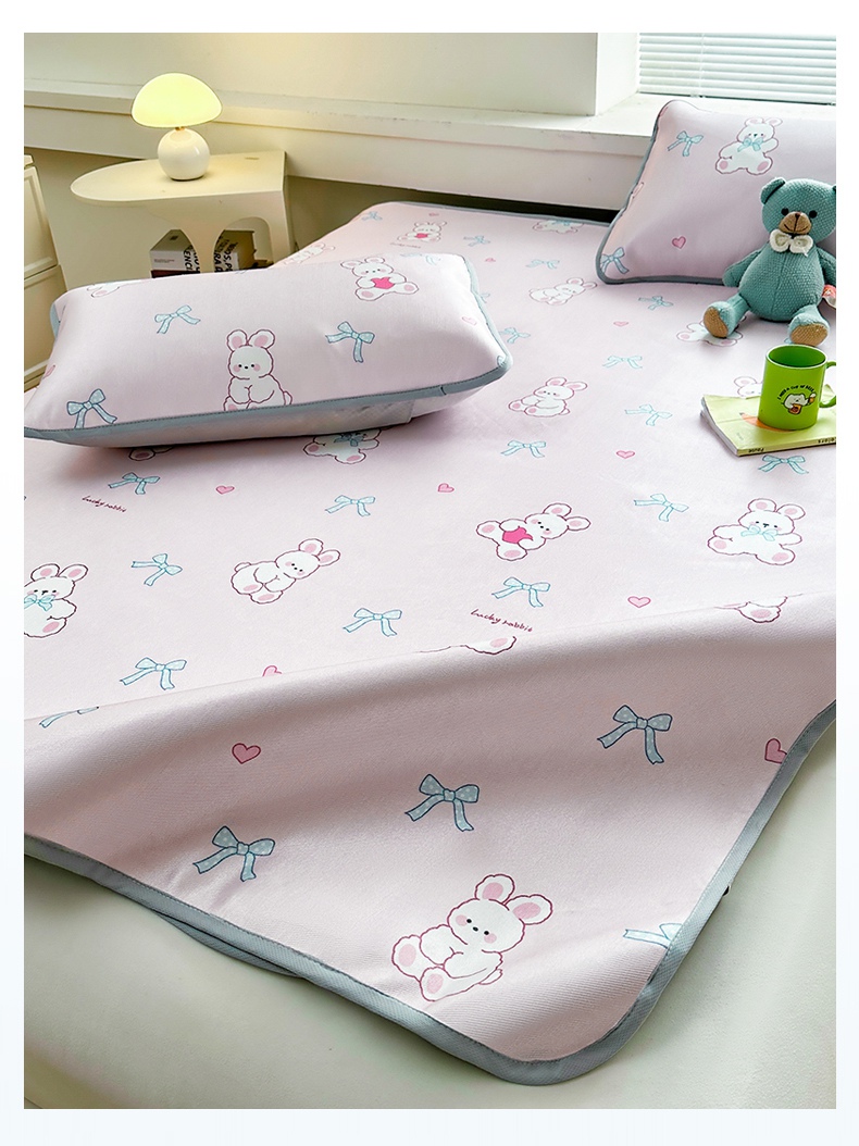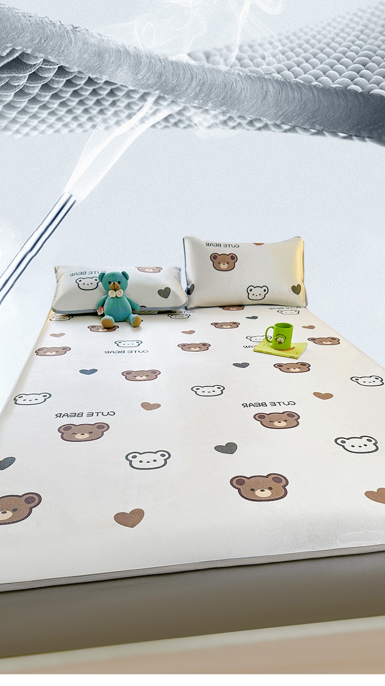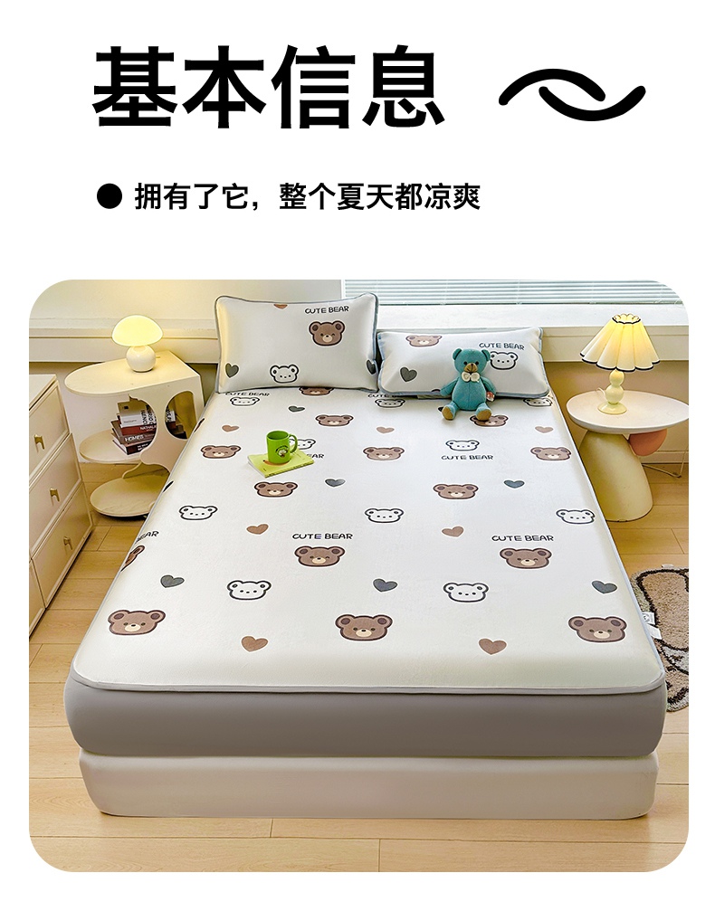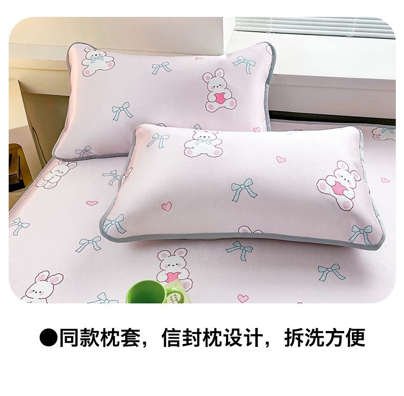 (总)雯豆家纺 2025夏季新品冰藤印花床笠三件套加厚冰丝软藤席小清新印花床罩单件